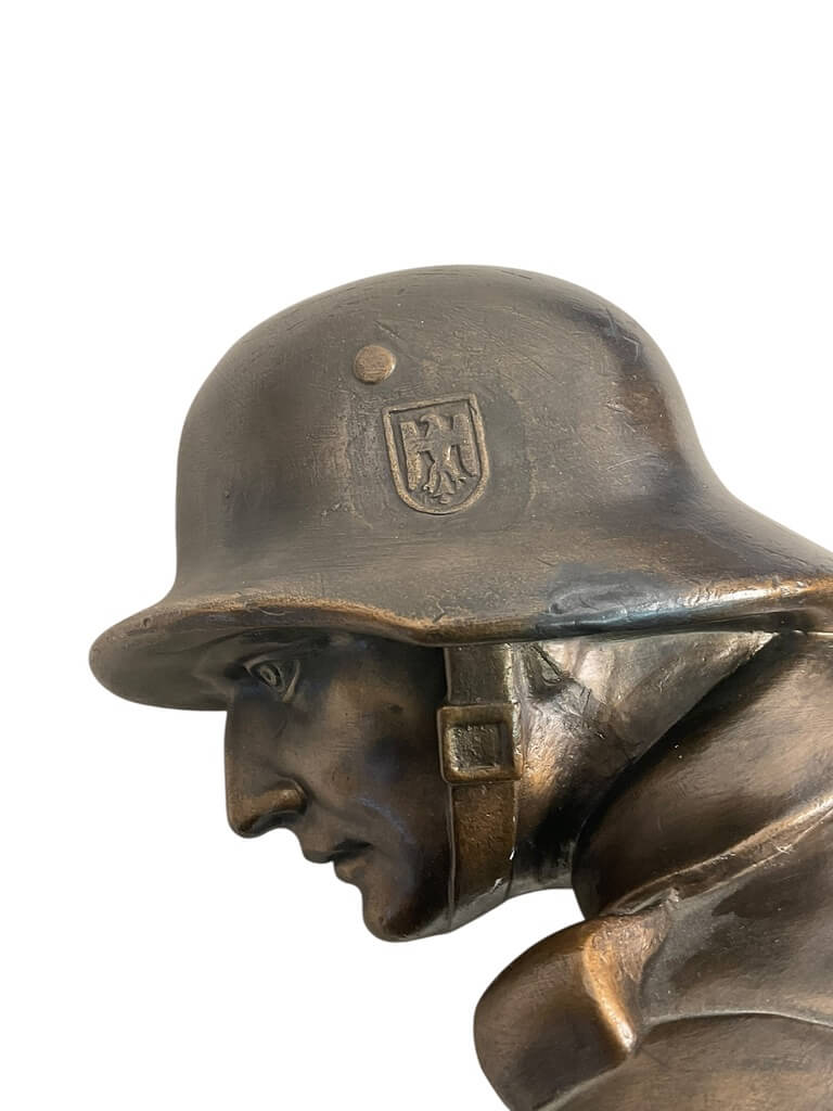 The WW2 German Shooting Prize Award Plaster Infantry Regiment 75, measuring 9 inches by 8 inches, is a significant piece of historical memorabilia from the Second World War. It signifies the rich military history of German infantry regiments and is an emblem of quality shooting values. The item is made entirely of plaster, implying it was likely used as a ceremonial award during the war years. Its distinguishing features include the infantry regiment number ’75’, marking its association to one of the many units that served in the German Army. The authenticity of such an artifact is crucial, and as the name suggests, this is indeed an original piece, not a reproduction. The piece’s theme revolves around World War II, making it a considerable point of interest for historians or collectors who specialize in military or war memorabilia, particularly those concerning the German forces.