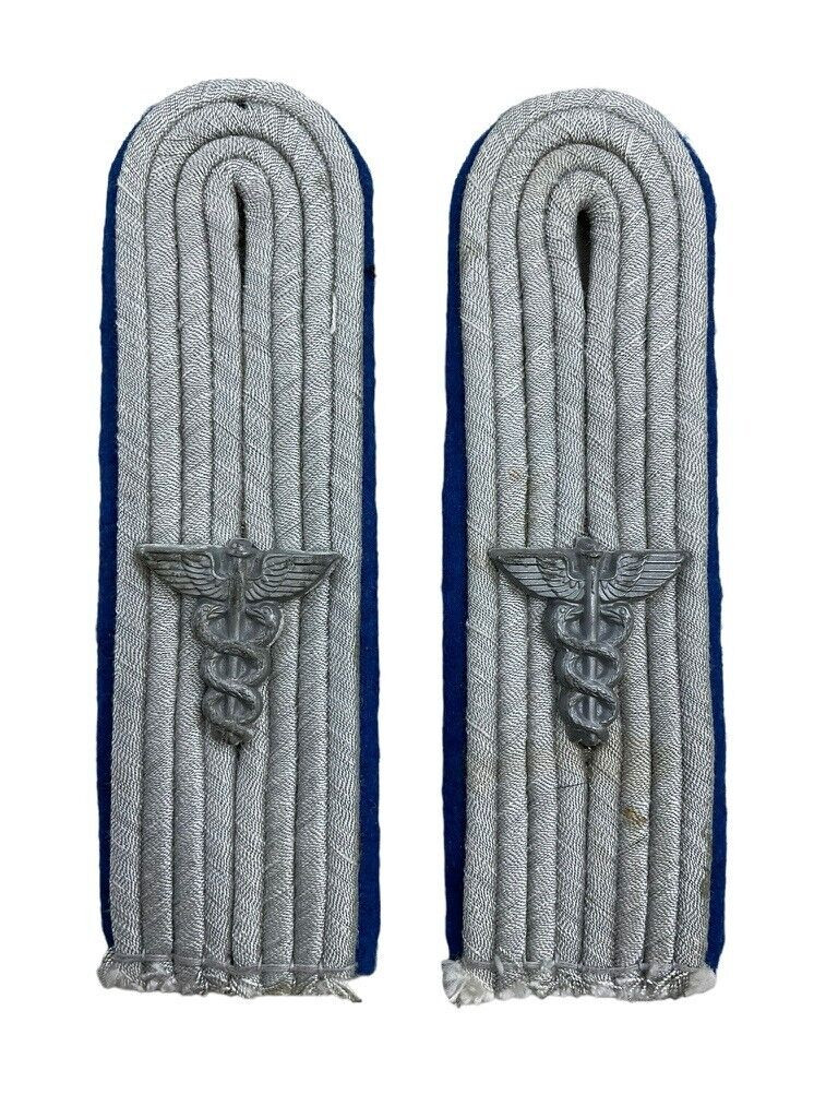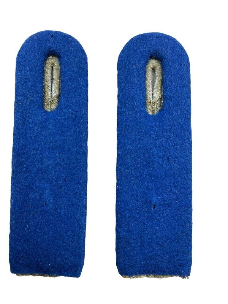 This collectible set features an authentic pair of shoulder boards used by German administrative officers during World War II. These shoulder boards were designated for personnel on special assignments within various administrative sectors, including logistics, intelligence, and communications. Carefully preserved, the shoulder boards exhibit intricate silver braid patterns resting on a dark green background, signifying their unique role and rank within the military hierarchy. Crafted with historical accuracy and attention to detail, these items offer a tangible connection to the era’s complex wartime bureaucracy. Ideal for history enthusiasts and collectors alike, this pair provides a distinctive insight into the uniform insignia and organizational structure of WWII German forces. Whether displayed as part of a larger collection or studied for educational purposes, these shoulder boards stand as a testament to the meticulous and rigid structure of wartime administration.