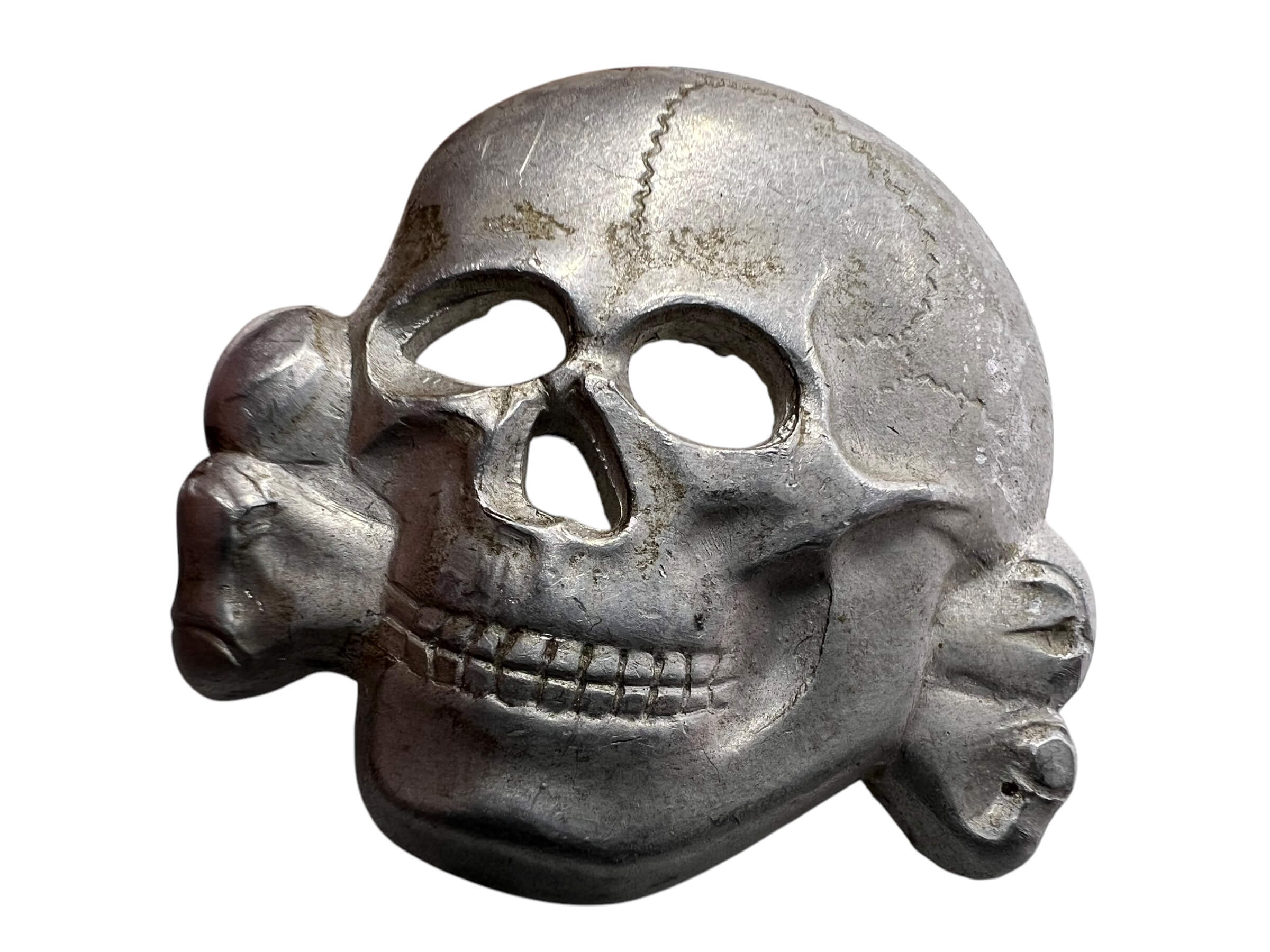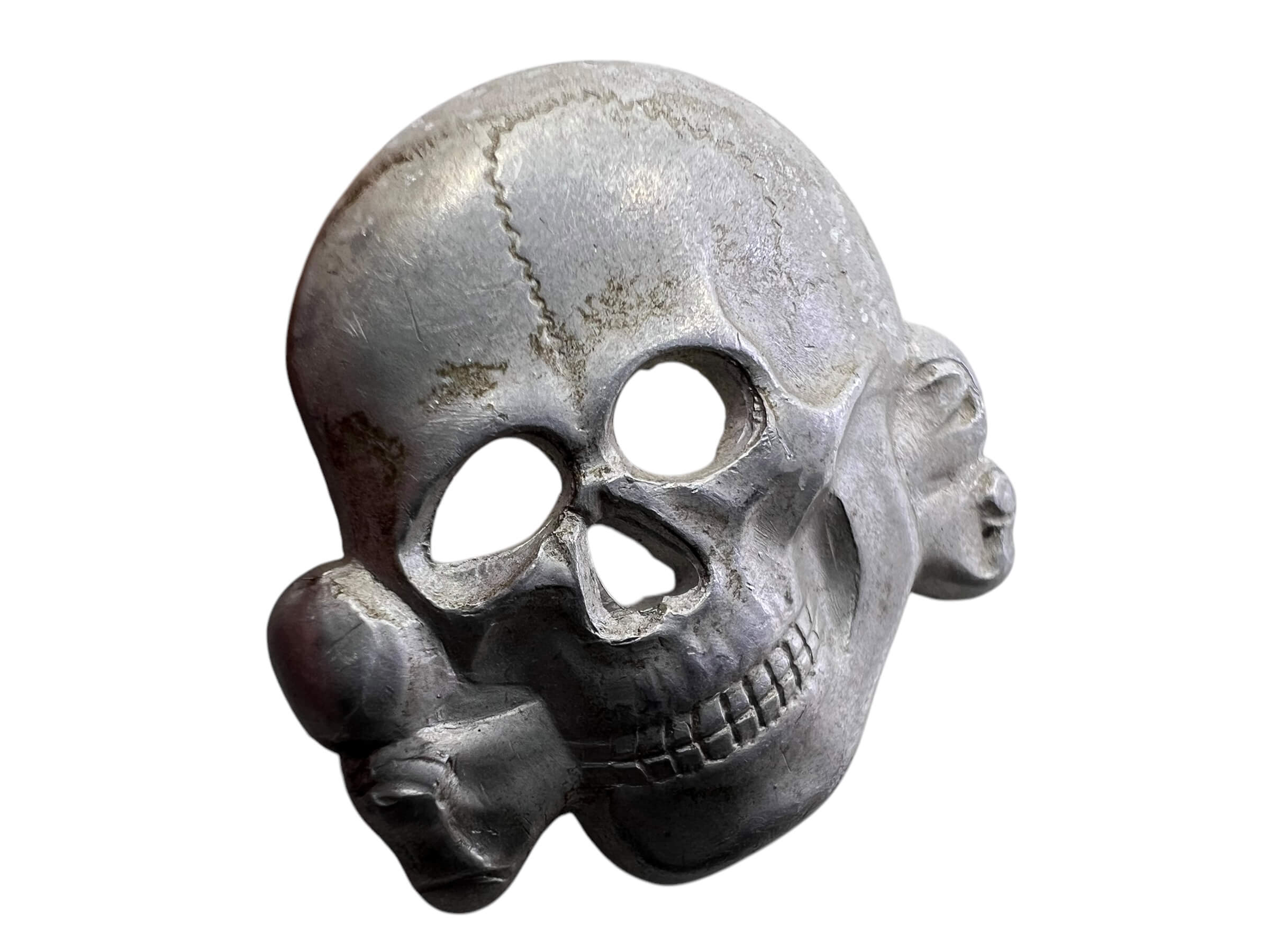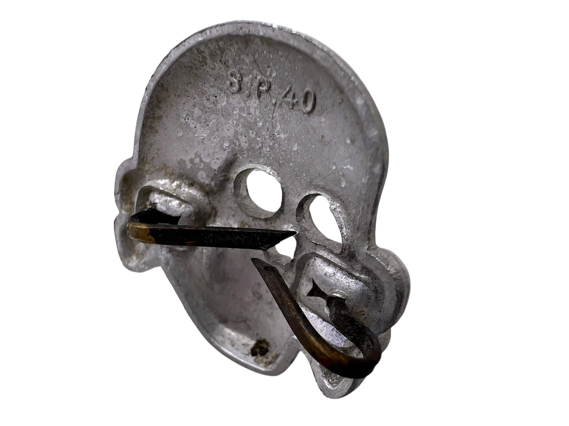 WW2 German SS Aluminum Totenkopf Skull Cap Badge By Overhoff Marked S.P.40