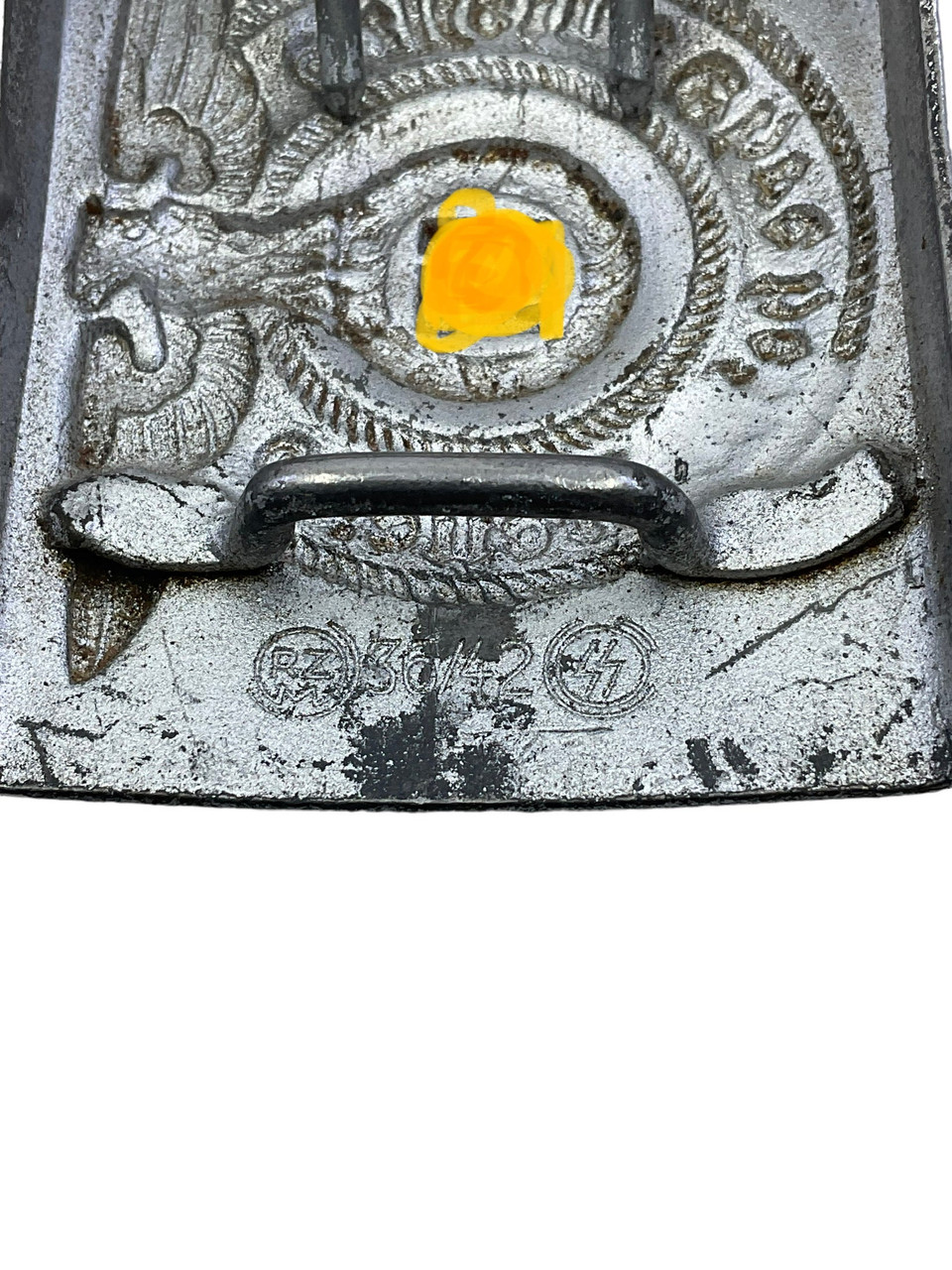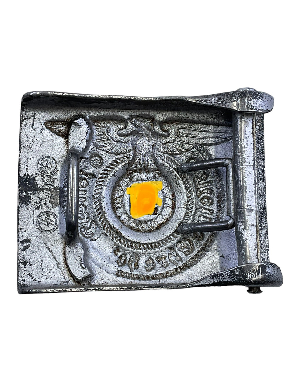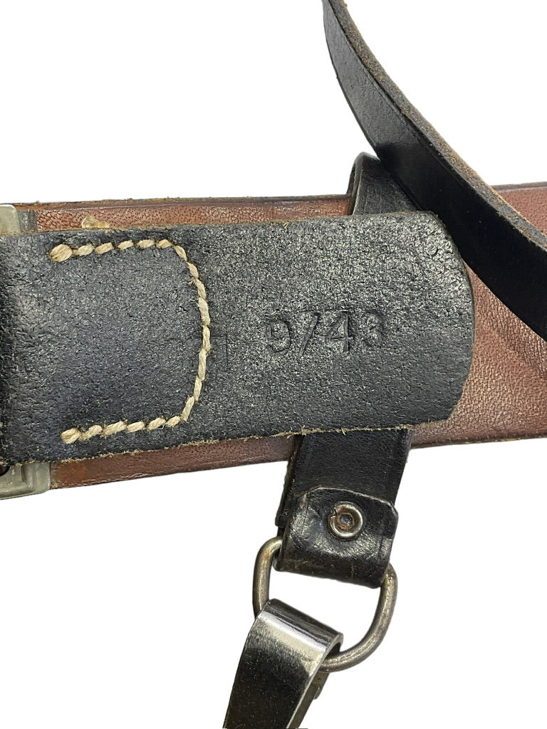 This historical artifact, ‘WW2 German SS Belt Buckle and Cross Strap Overhoff & Cie’, embodies a significant yet dark period of the 20th century. Manufactured by Overhoff & Cie, a notable wartime producer, this SS belt buckle and cross strap were part of the standard uniform accouterments for the Schutzstaffel (SS), the paramilitary organization under the Nazi Party. The belt buckle showcases intricate craftsmanship and the iconic SS insignia, reflecting the sinister symbolism and authoritarian aesthetics of the era. The accompanying cross strap, designed for durability and practicality, ensured the secure fit and functionality of the uniform. Collectors and historians might find this piece to be a sobering reminder of the regime’s militaristic culture and an essential item for understanding World War II military history. The buckle and strap remain poignant artifacts, encapsulating the chilling legacy of the time.