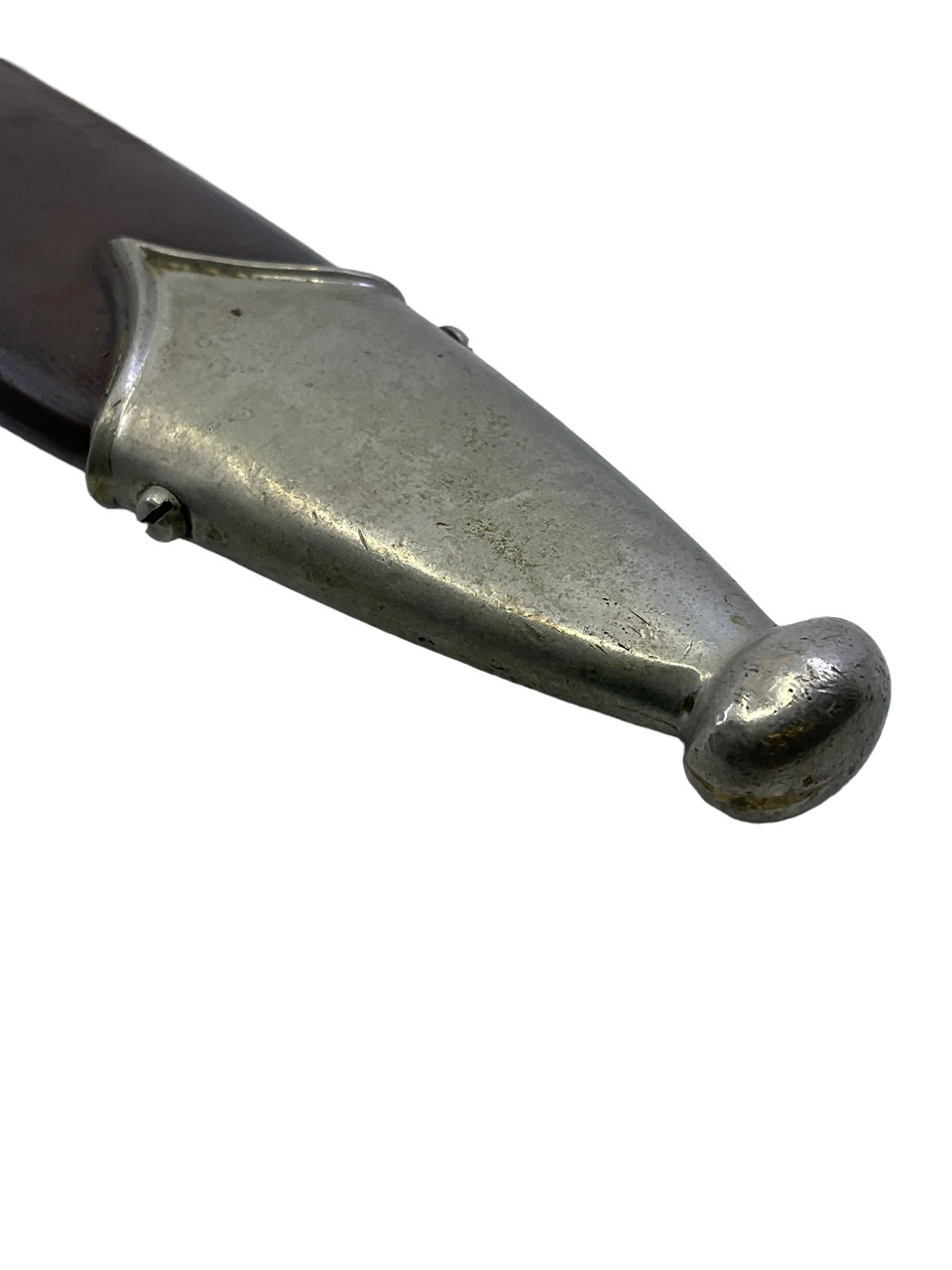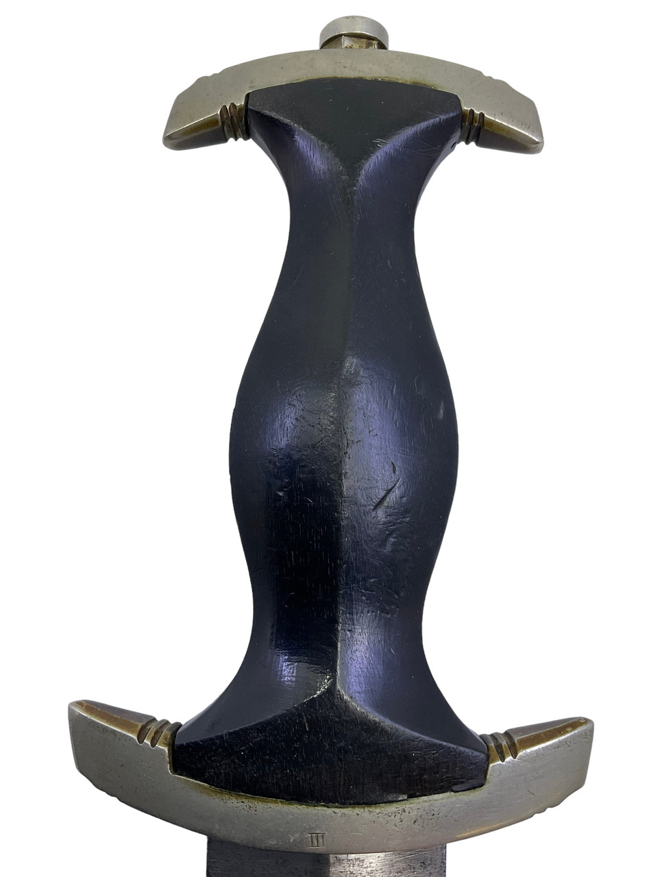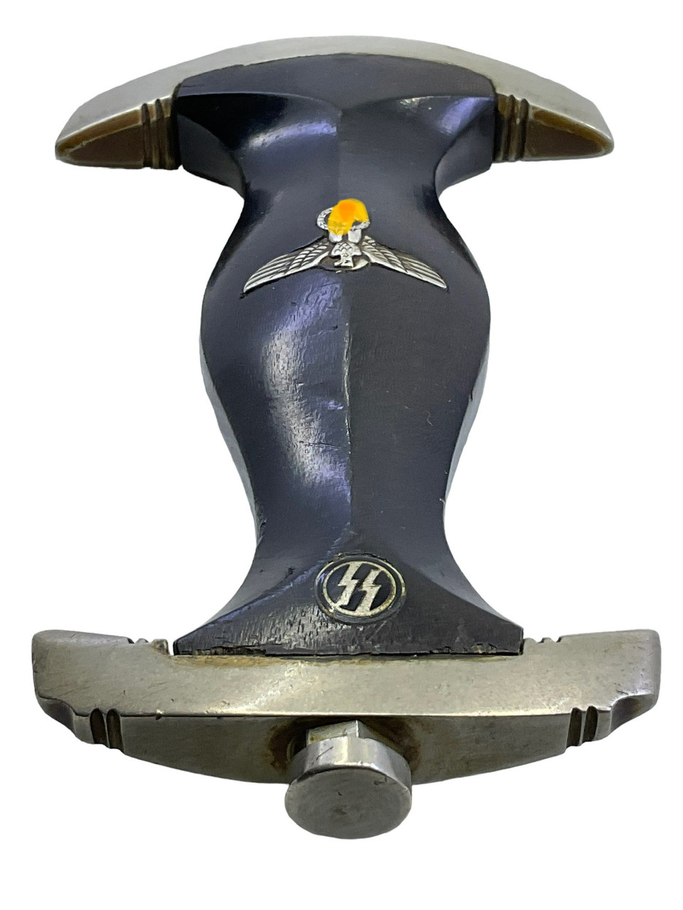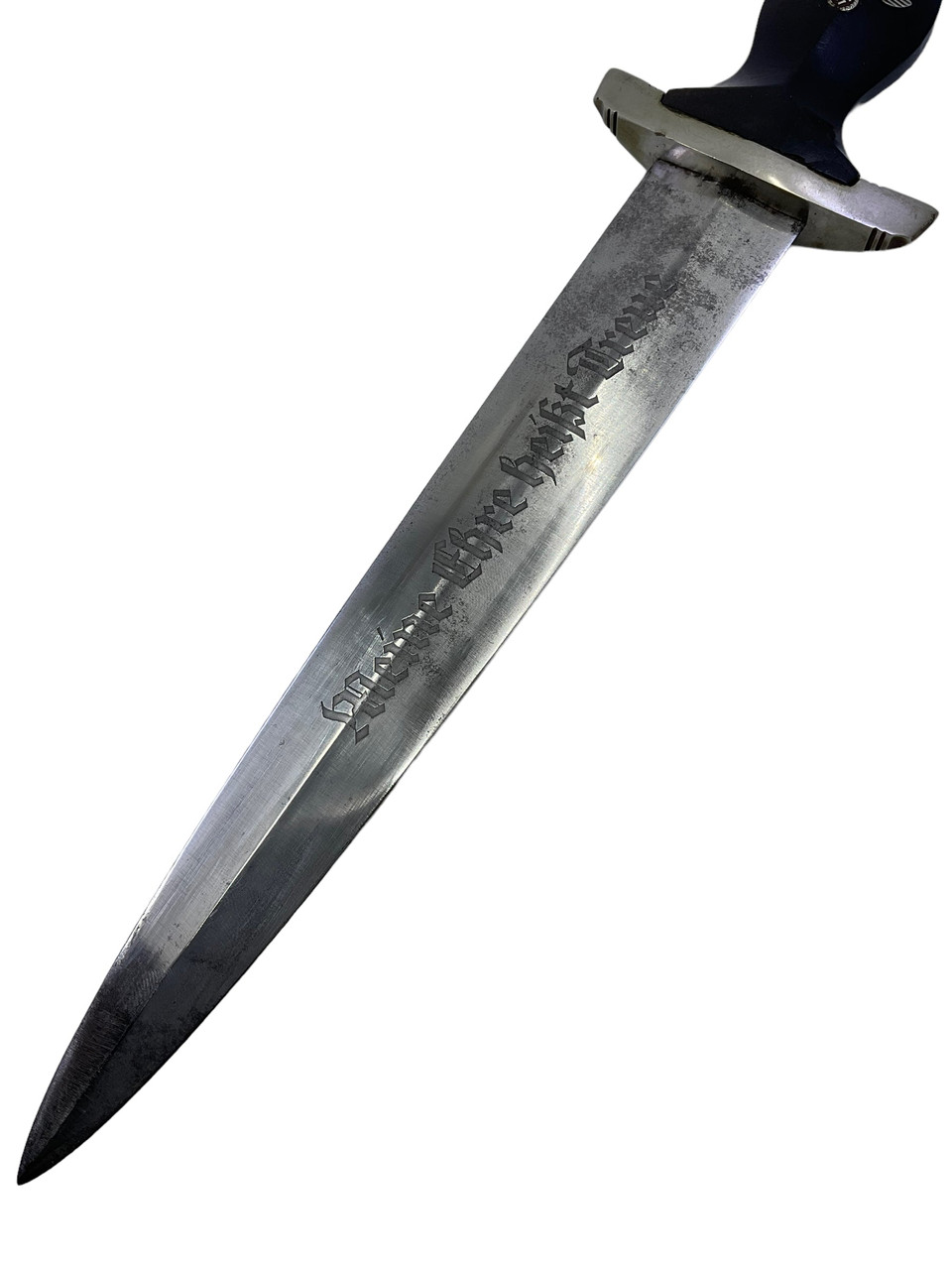 This 1933 German SS Dagger by Gottlieb Hammesfahr is a distinctive and historically significant piece from the Third Reich era. Crafted with meticulous precision, this dagger features a sleek, double-edged blade emblazoned with the infamous SS motto. The crossguard and pommel showcase intricate detailing, emblematic of the skilled craftsmanship of the Solingen-based manufacturer, Gottlieb Hammesfahr. Accompanying the dagger is its original scabbard, designed to protect and preserve the blade, and adorned with authentic period markings. Additionally, the marked hanger provides secure attachment, complete with period-appropriate insignias and robust construction. This piece represents a poignant artifact from an era of craftsmanship that is meticulously preserved for collectors and historians alike. The dagger, scabbard, and hanger collectively provide a fascinating insight into the military history and the personal regalia of the SS elite.
