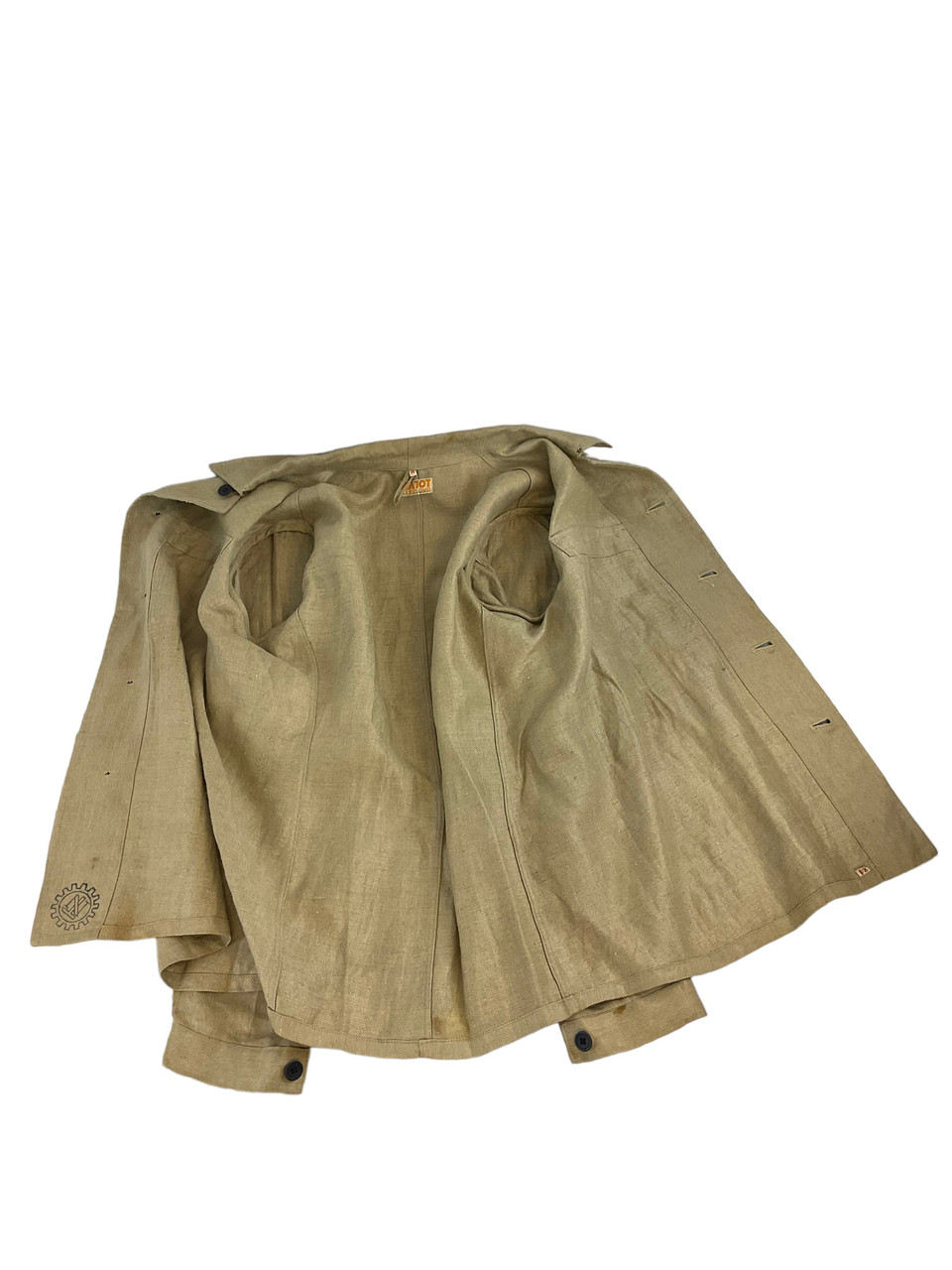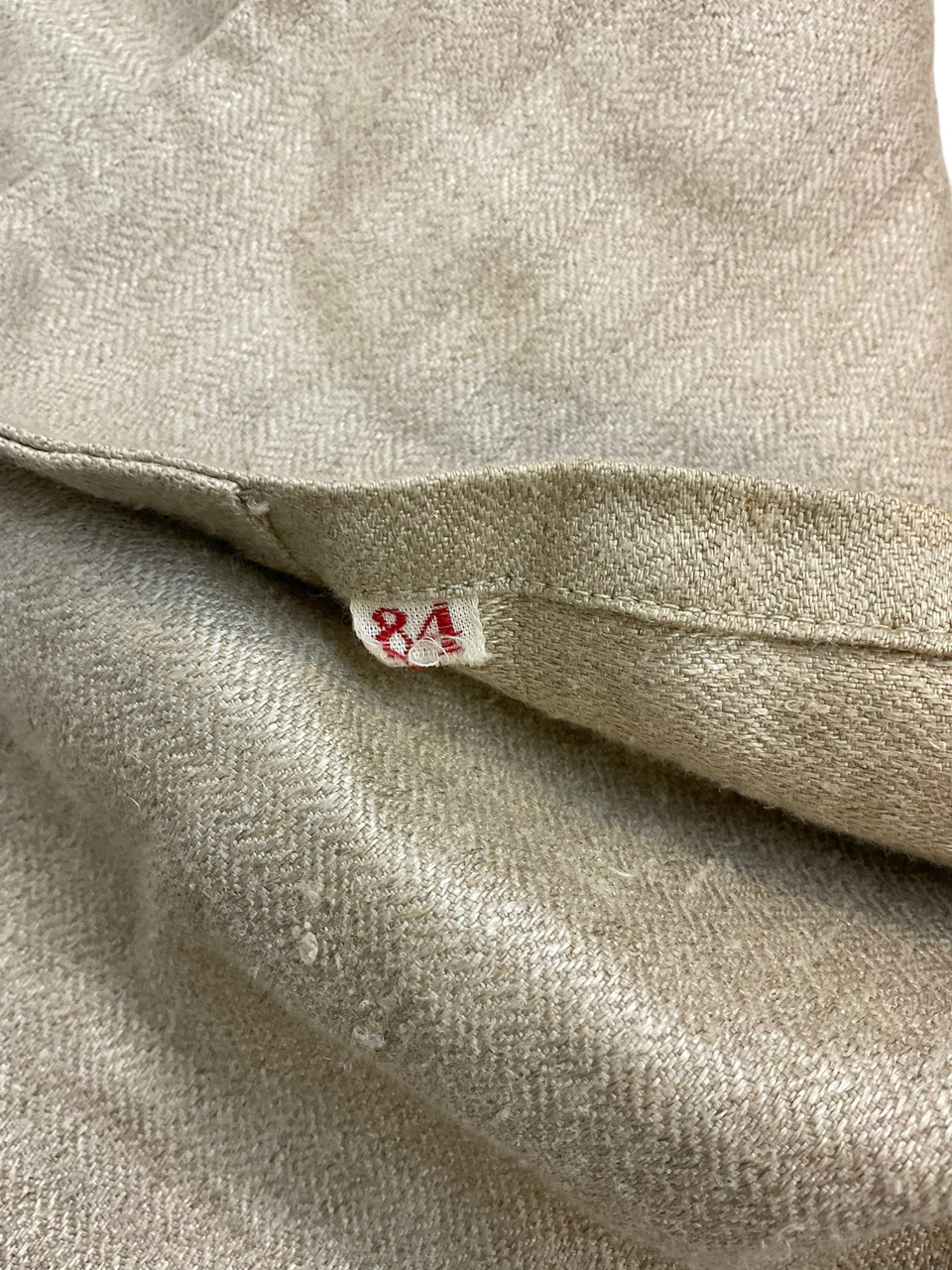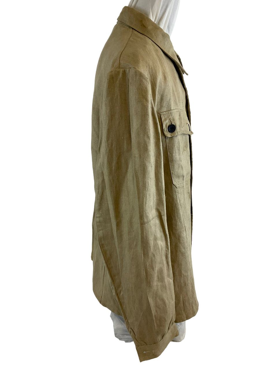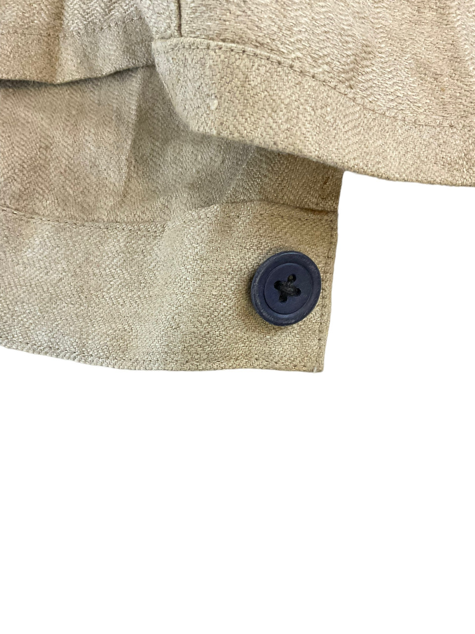 The WW2 German TENO HBT Drill Cream Coloured Tunic and Matching Trousers are an authentic representation of historical military attire. Crafted from durable herringbone twill (HBT) fabric, this set was designed for work and drill purposes, offering both utility and comfort. The cream-colored tunic features practical pockets and button closures, reflecting the functional design philosophy of the era. Matched with corresponding trousers, this ensemble provides a cohesive and professional appearance. Both pieces exhibit meticulous attention to detail, enhancing their historical value. Ideal for collectors, reenactors, or history enthusiasts, this uniform set not only signifies the uniformity and discipline of TENO (Technische Nothilfe) during World War II but also serves as a tangible link to the past, preserving the essence of a bygone military tradition.