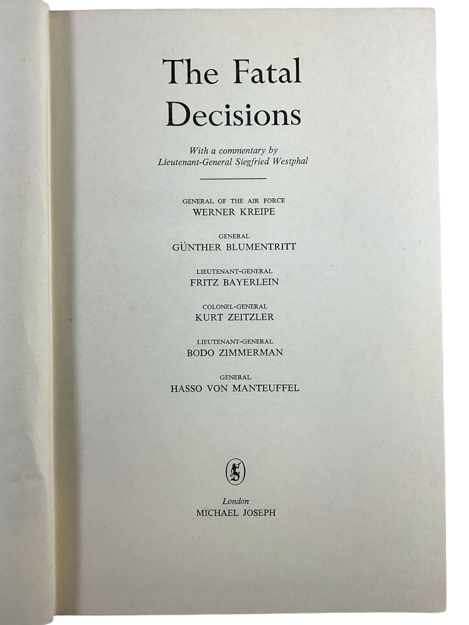 WW2 German The Fatal Decisions Six Decisive Battles Hardcover Reference Book