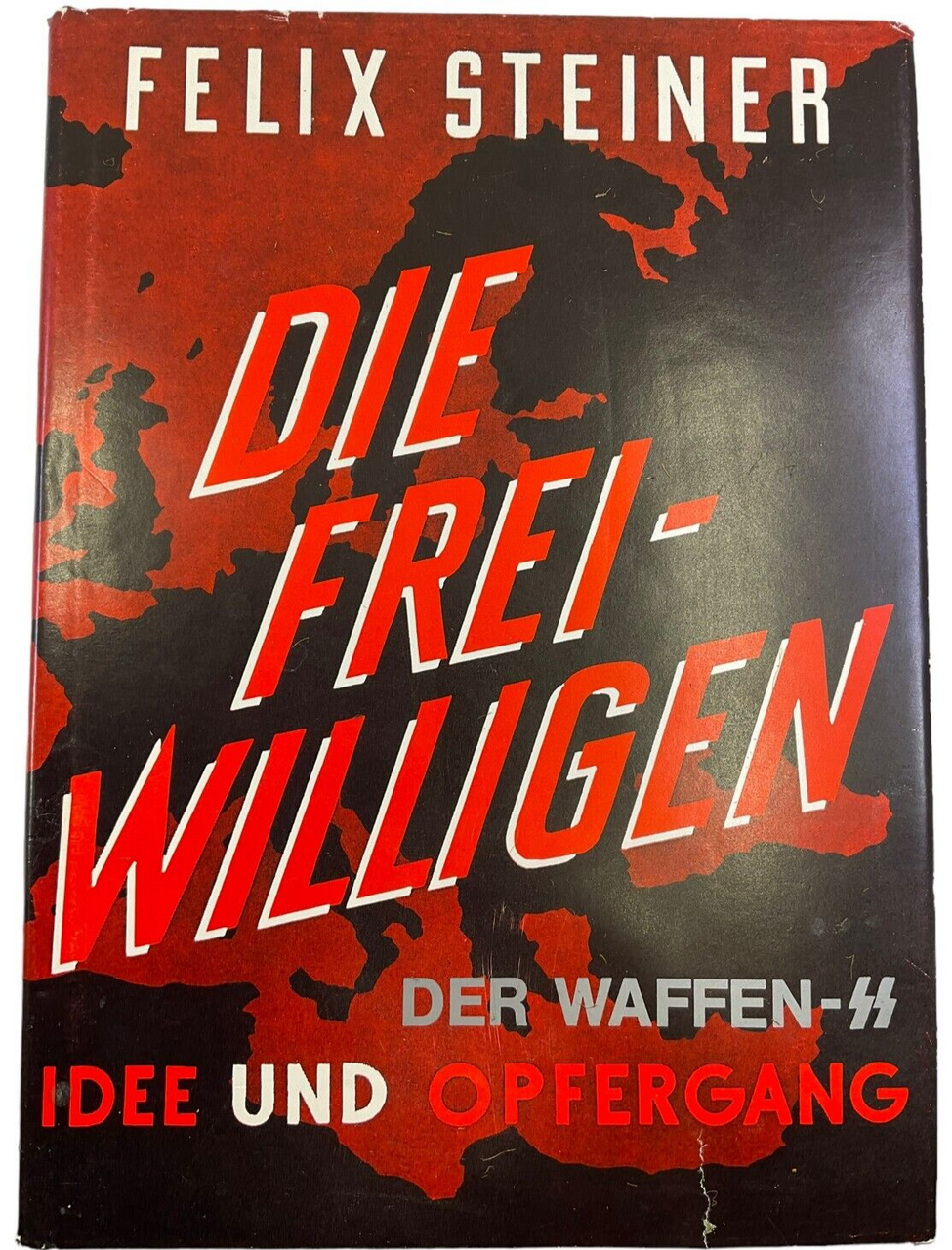 This is a used hardcover WW2 German The volunteers of the Waffen Idea and Sacrifice Felix Steiner GERMAN TEXT Reference Book.  Total of 392 pages with lots of pictures and information.