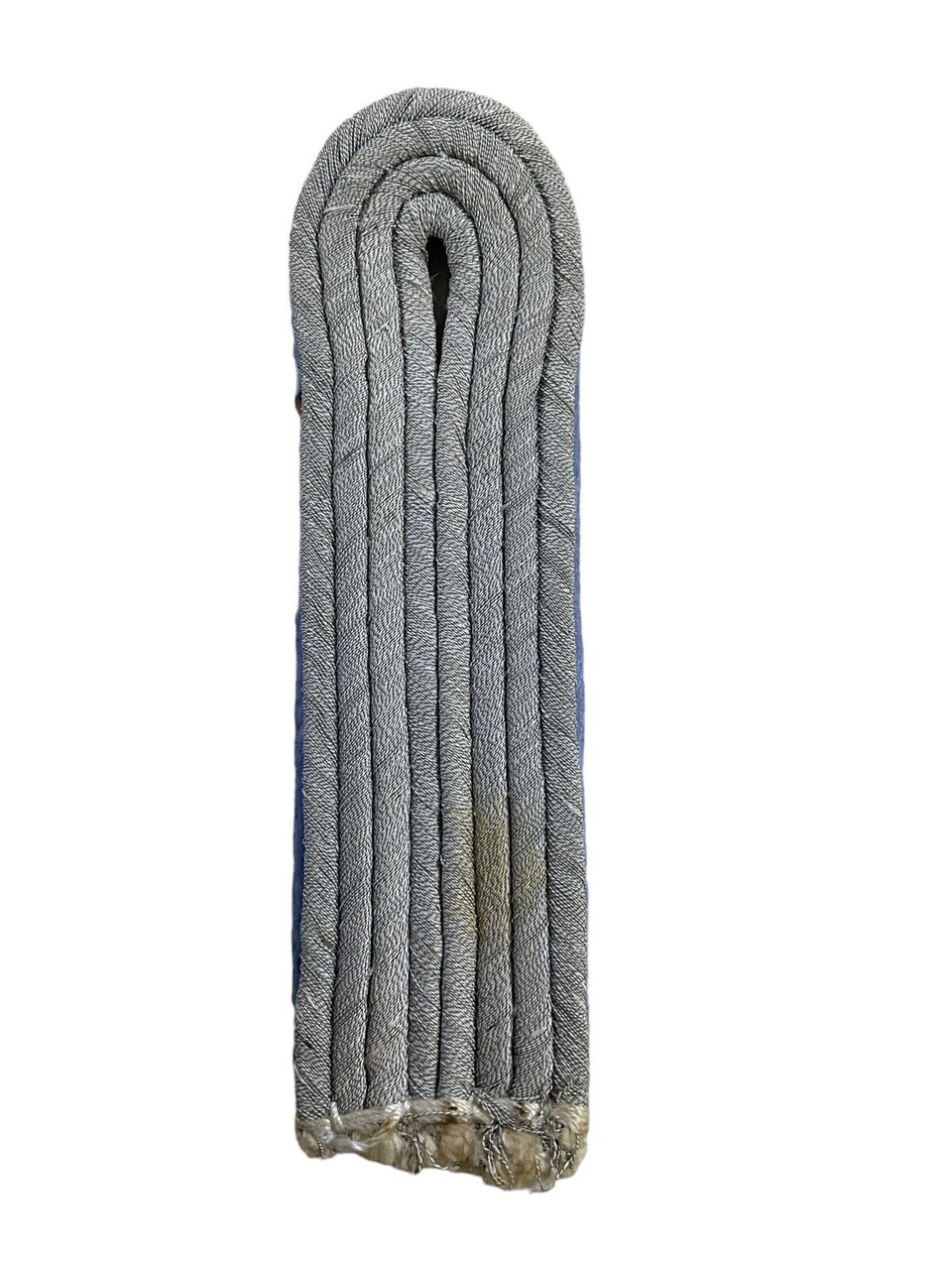The WW2 German Transport Officer Blue Piped Shoulder Board Single is a distinctive piece of military regalia, showcasing the rank and role of transportation officers in the German army during World War II. This authentic shoulder board features the characteristic blue piping that denotes the transport service branch, elegantly bordering the board’s edges. The meticulously braided silver cords indicate an officer’s status, while the high-quality materials reflect the craftsmanship of the era. This shoulder board is a single piece, adding a touch of historical authenticity and scarcity to any military collection. Whether you’re a history enthusiast or a collector of WWII memorabilia, the WW2 German Transport Officer Blue Piped Shoulder Board Single serves as a tangible link to the past, representing the uniforms and insignia used by the transport officers who played a crucial role in the logistical operations of the German military during the war.