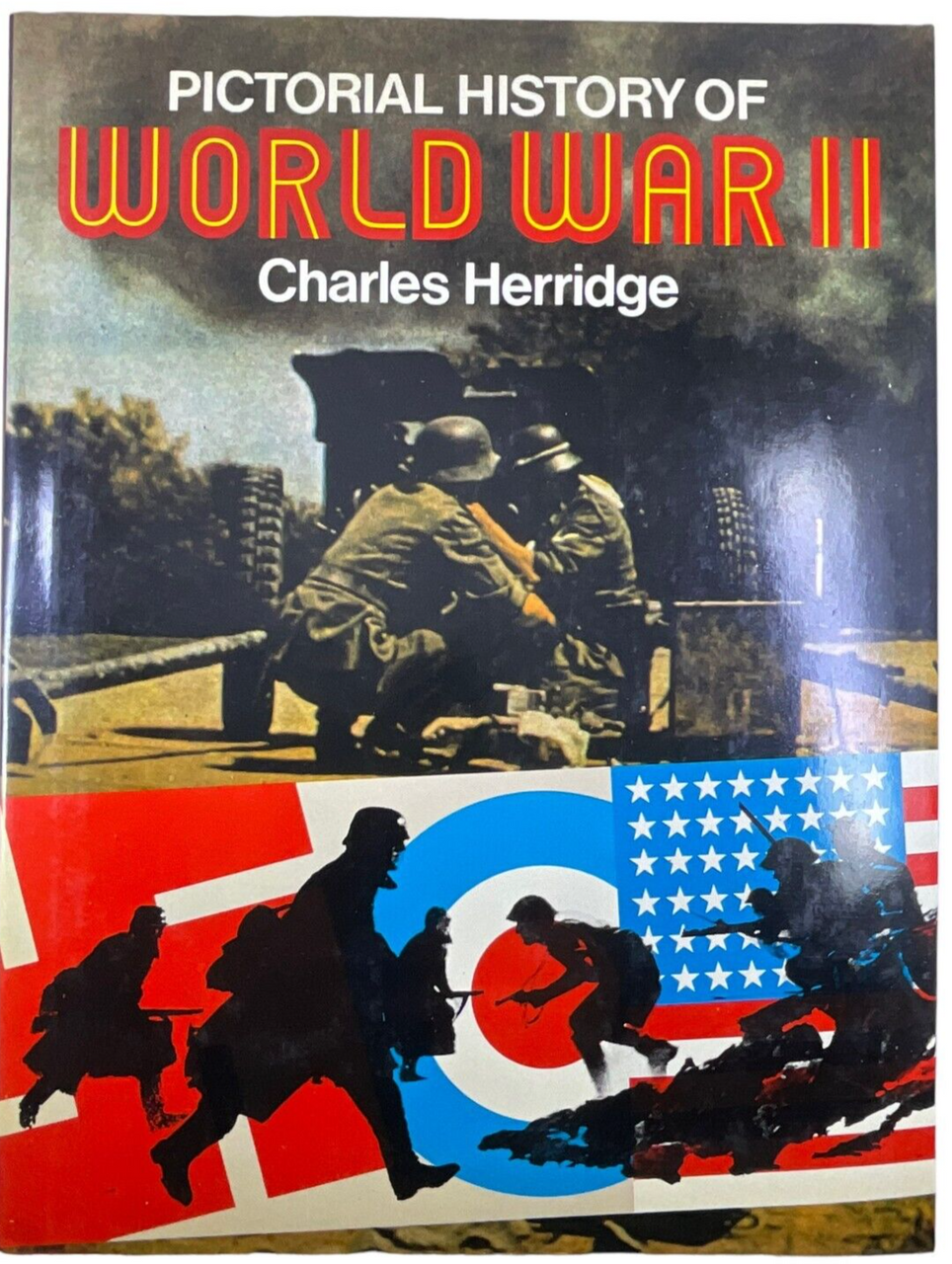 This is a used hardcover WW2 German US British Pictorial History of World War 2 Charles Herridge Reference Book. Total of 253 pages with lots of pictures and information.