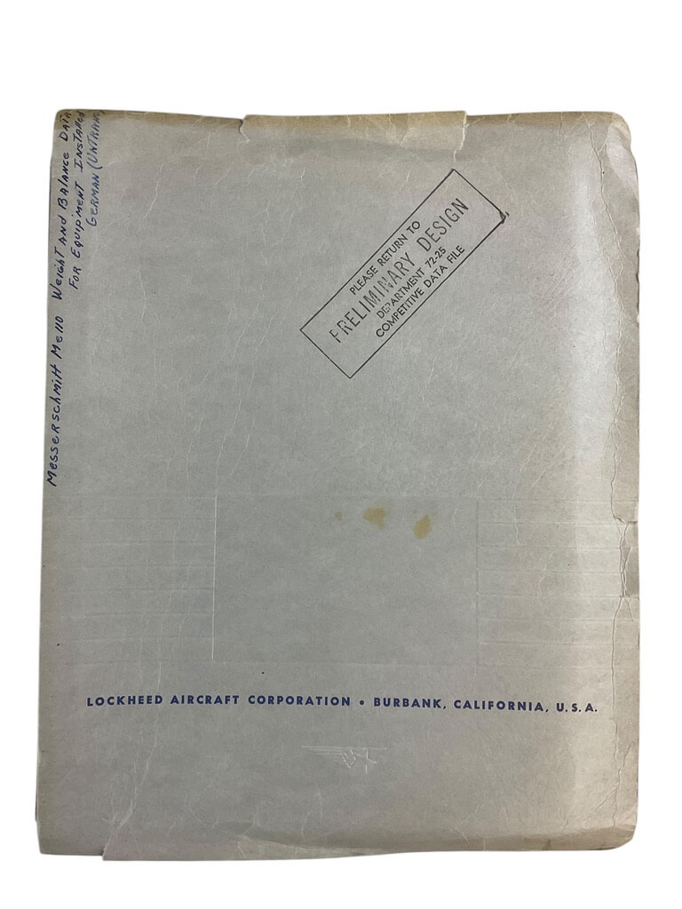 WW2 German US Lockheed Messerschmitt Me110 Weight and Balance Data