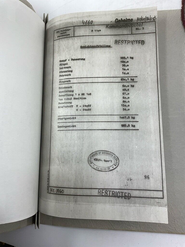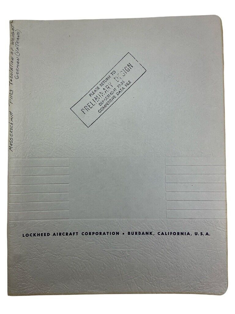 WW2 German US Lockheed Messerchmitt P1103 Tabulation of Weight