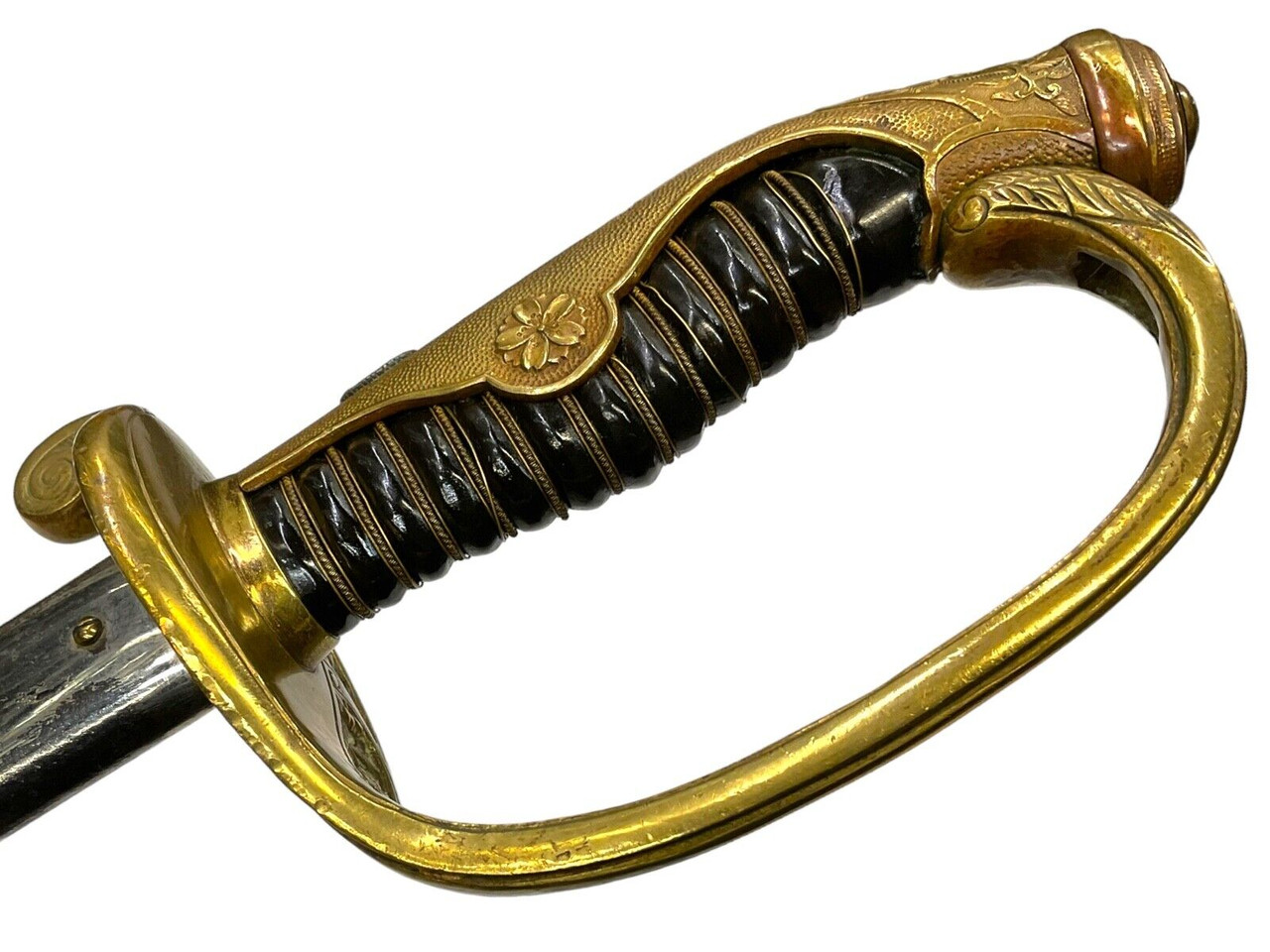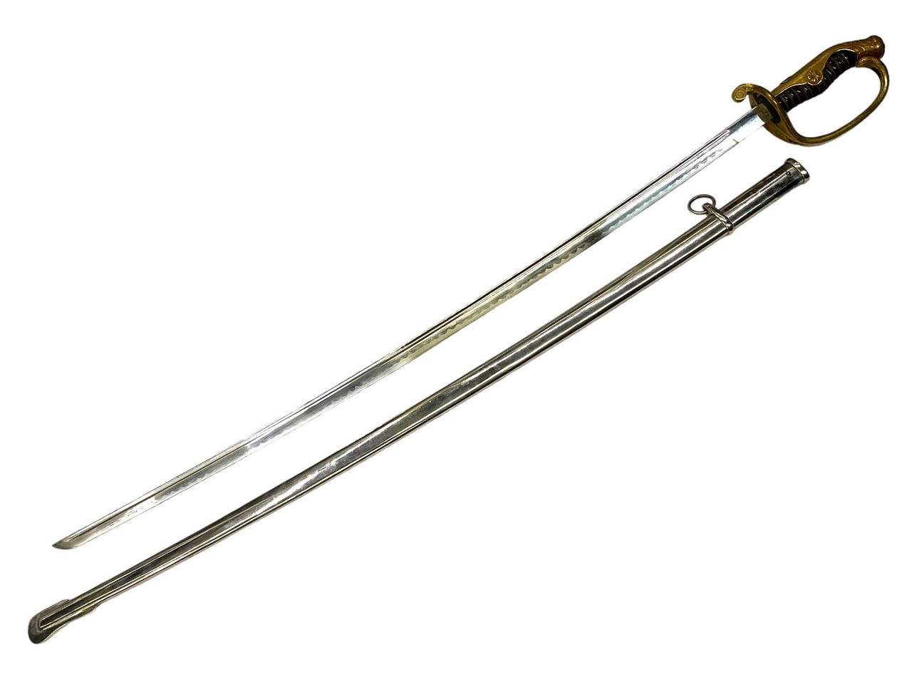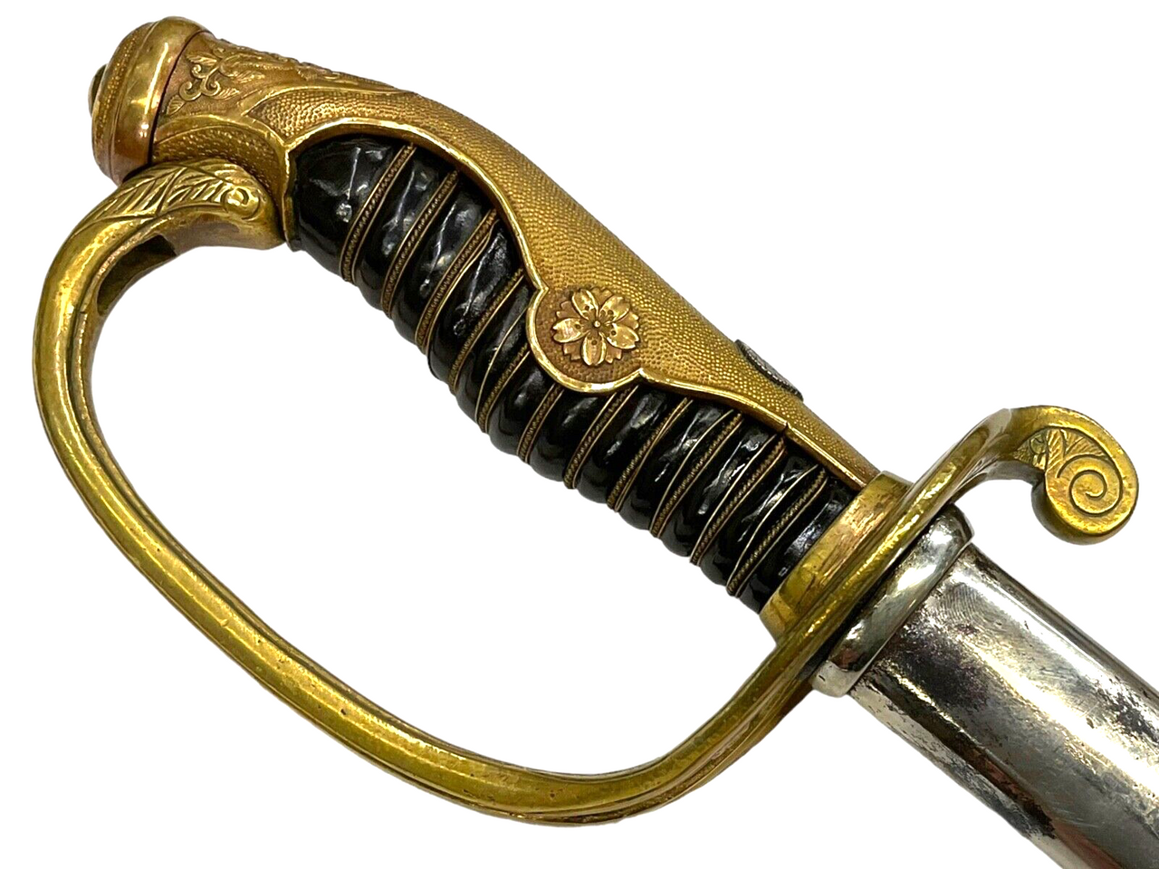 This exquisite WW2 Imperial Japanese Army Officers Parade Sword is a stunning piece of history, ideal for collectors and historians alike. The 33-inch blade features a unique wavy, folded design, showcasing expert craftsmanship and traditional swordsmithing techniques. An emblem of prestige and authority, this parade sword comes adorned with an insignia on its back strap, representing the honor and rank of the officer who once wielded it. The elegant curvature and meticulous detailing of the blade reflect the artistry and sophistication typical of Imperial Japanese military regalia during World War II. Both a fascinating relic and a symbol of the era’s martial heritage, this sword offers a tangible connection to the past, making it a prized addition to any collection of militaria or historical artifacts.