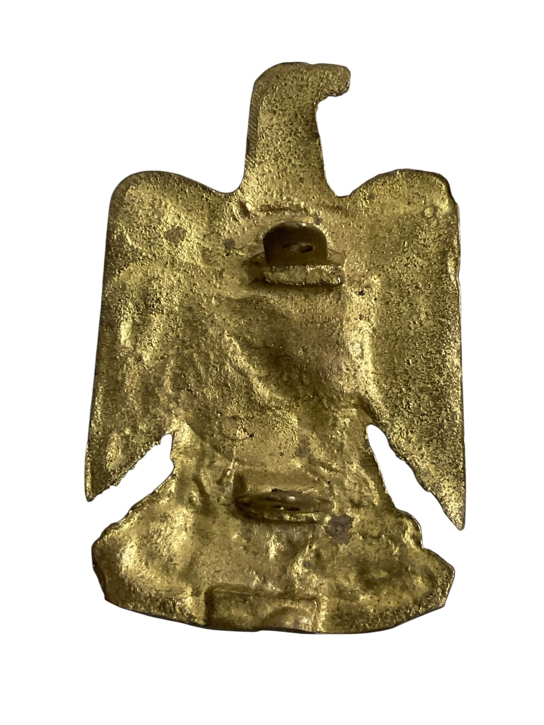 The WW2 Iraqi Cap Badge is a piece of military insignia issued to personnel of the Iraqi armed forces during the Second World War. Constructed typically from metal, the badge features symbolic elements representative of the Kingdom of Iraq, which was established under British influence following World War I. The design often incorporates motifs such as the national emblem, Arabic script, or traditional Iraqi symbols. Worn on headgear, these cap badges served both as a means of identification and as a mark of allegiance to the Iraqi military during a period of political and military realignment in the region. Iraq’s involvement in World War II, initially as a neutral state, shifted during the conflict, which in turn influenced uniform insignia issued to its troops. These badges are of interest for collectors and historians as artifacts reflecting Iraqi military history during the early to mid-20th century. Typical wear and patina are consistent with age and service use.