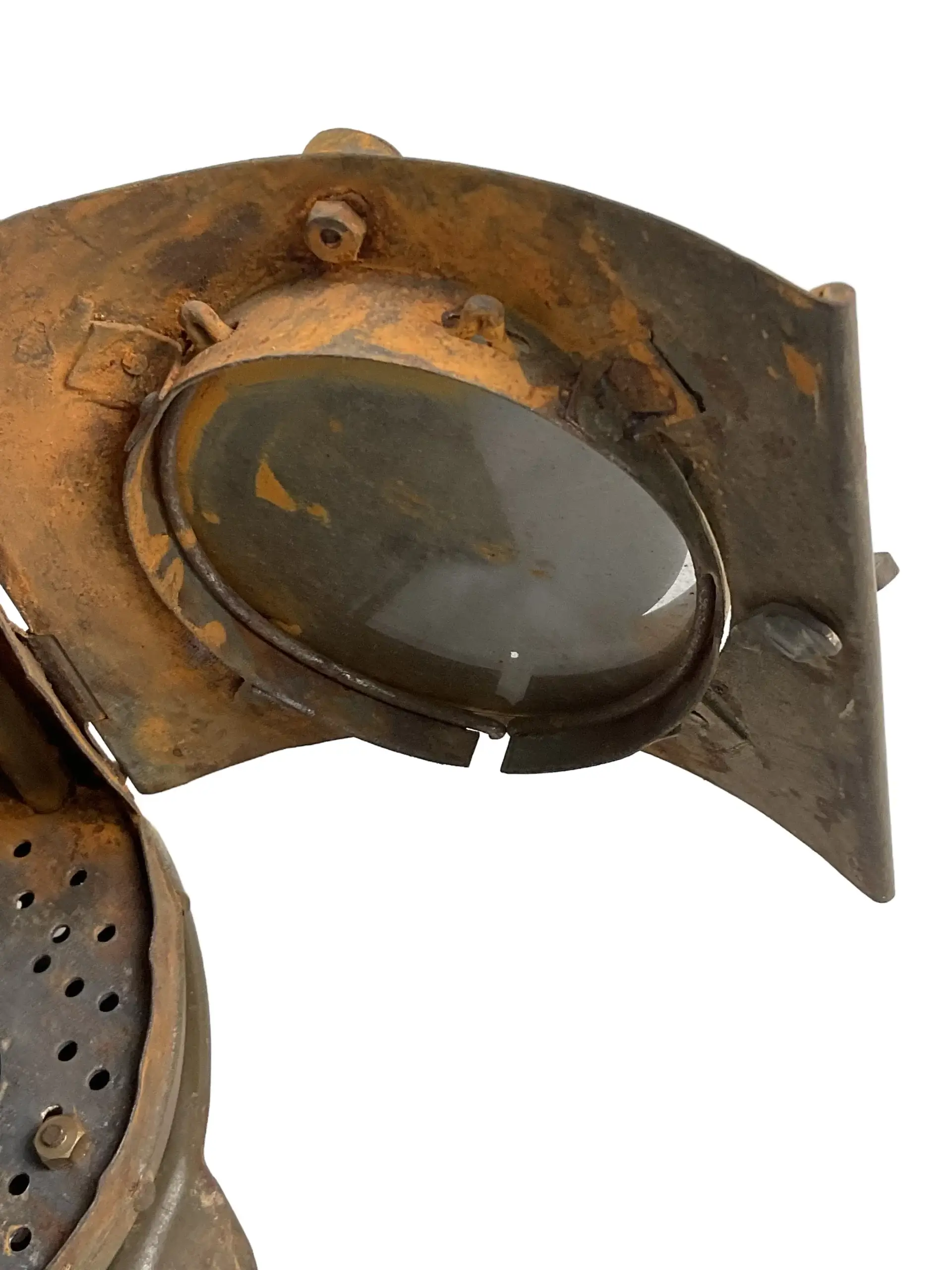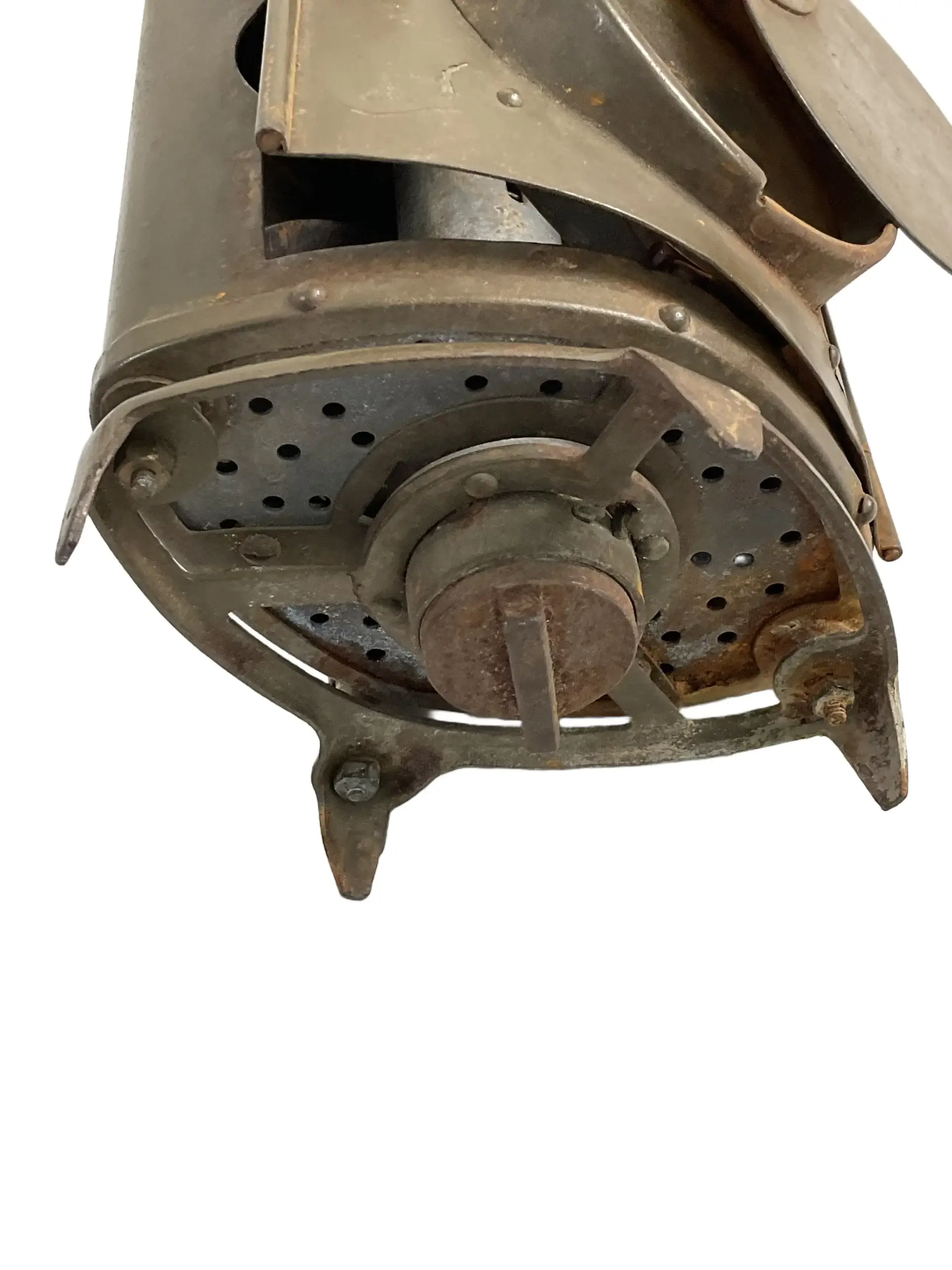 The WW2 Japanese Army Field Lantern is a utilitarian lighting device issued to the Imperial Japanese Army during the Second World War. Constructed primarily of metal, these lanterns were designed for portability and durability in field conditions. Typical features include a rectangular or cylindrical body, a hinged or lift-off lid, and protective wire guards surrounding glass panels. Ventilation holes or chimneys are often present to allow for safe burning of oil or candles. A sturdy handle is attached for carrying or hanging in tents, trenches, or field command posts. These lanterns played a practical role in night operations, map reading, or general illumination. Markings may include Japanese script denoting manufacturer or military acceptance stamps. Condition varies according to age and usage, and surviving examples often display patina, minor dents, or surface rust. The WW2 Japanese Army Field Lantern remains an example of functional military equipment from the period, valued for its historical association and craftsmanship.