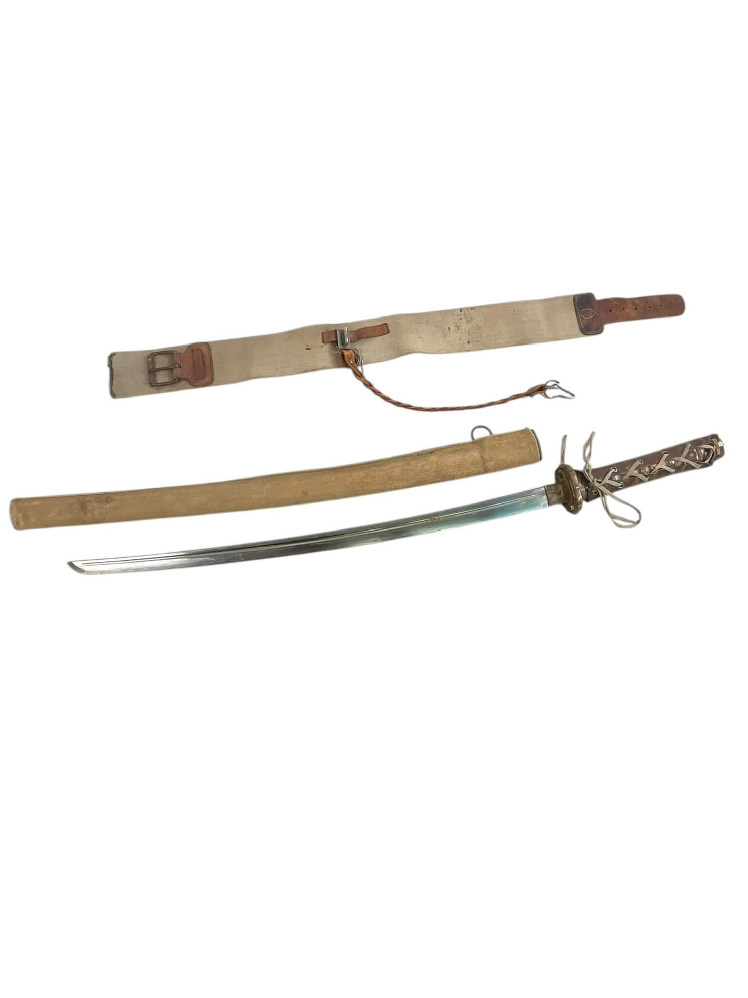 WW2 Japanese Army NCO Sword Tokyo Arsenal Marked Matching Numbers with Field Scabbard Cover and Belt