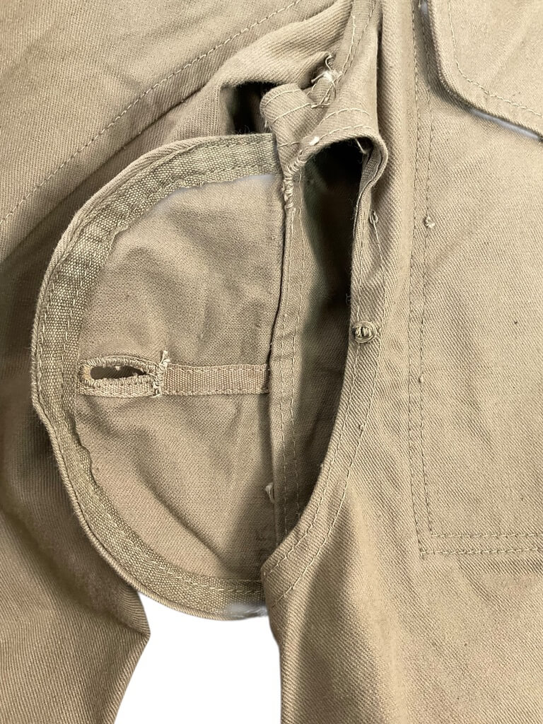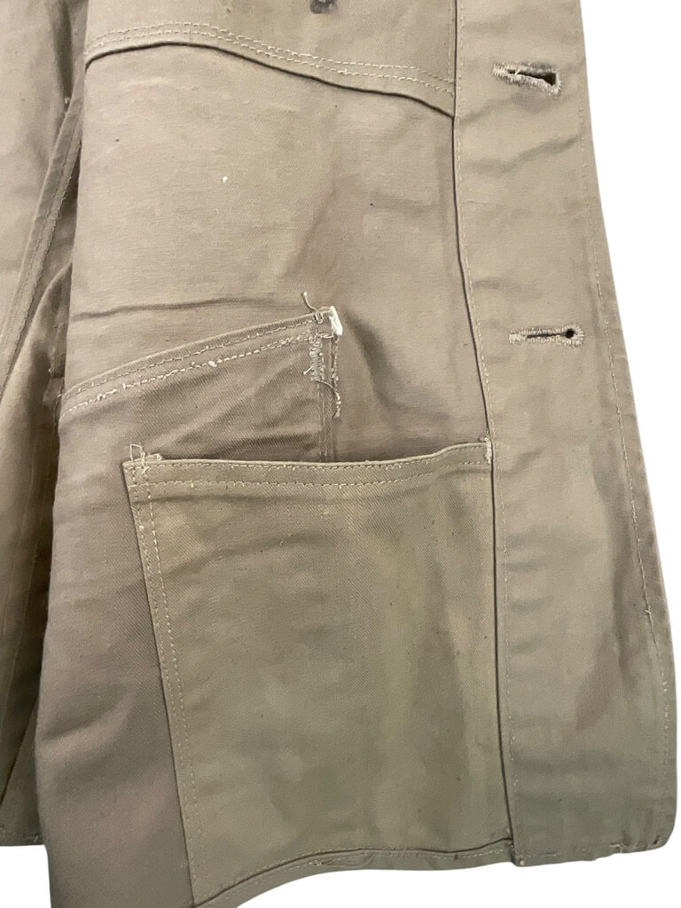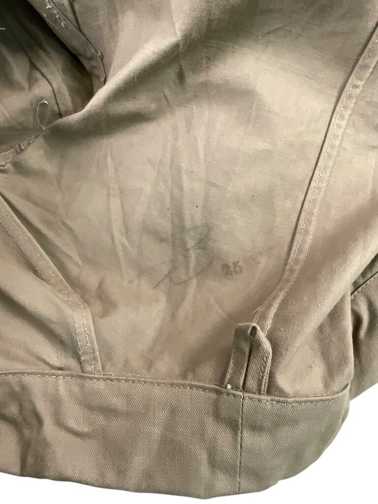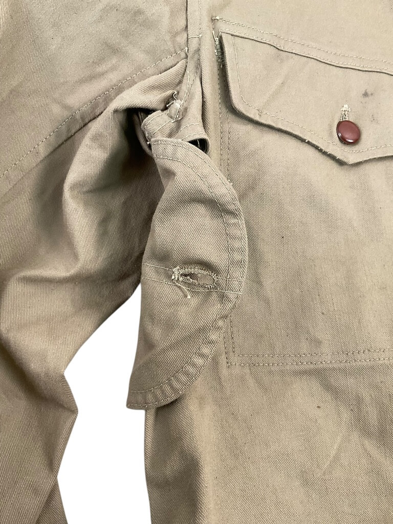 The WW2 Japanese Army Summer Weight Tunic for Senior Privates is an original military uniform component issued to Imperial Japanese Army personnel during the Second World War. Designed for use in warm climates, this tunic is constructed from lightweight cotton drill fabric in an olive or khaki shade, providing increased comfort in hot weather conditions. The tunic features a stand-and-fall collar, front button closure, and two breast pockets with scalloped flaps. Distinctive insignia for the rank of Senior Private (Joto Hei) are typically displayed on the collar tabs, which are attached in accordance with wartime regulations. The overall design reflects Japanese military uniform standards of the 1930s and early 1940s, emphasizing practicality and ease of movement. This example illustrates the adaptations made by the Japanese Army for campaigns in tropical and subtropical regions, including China, Southeast Asia, and the Pacific Islands. Condition and markings may vary depending on period use and manufacturer.