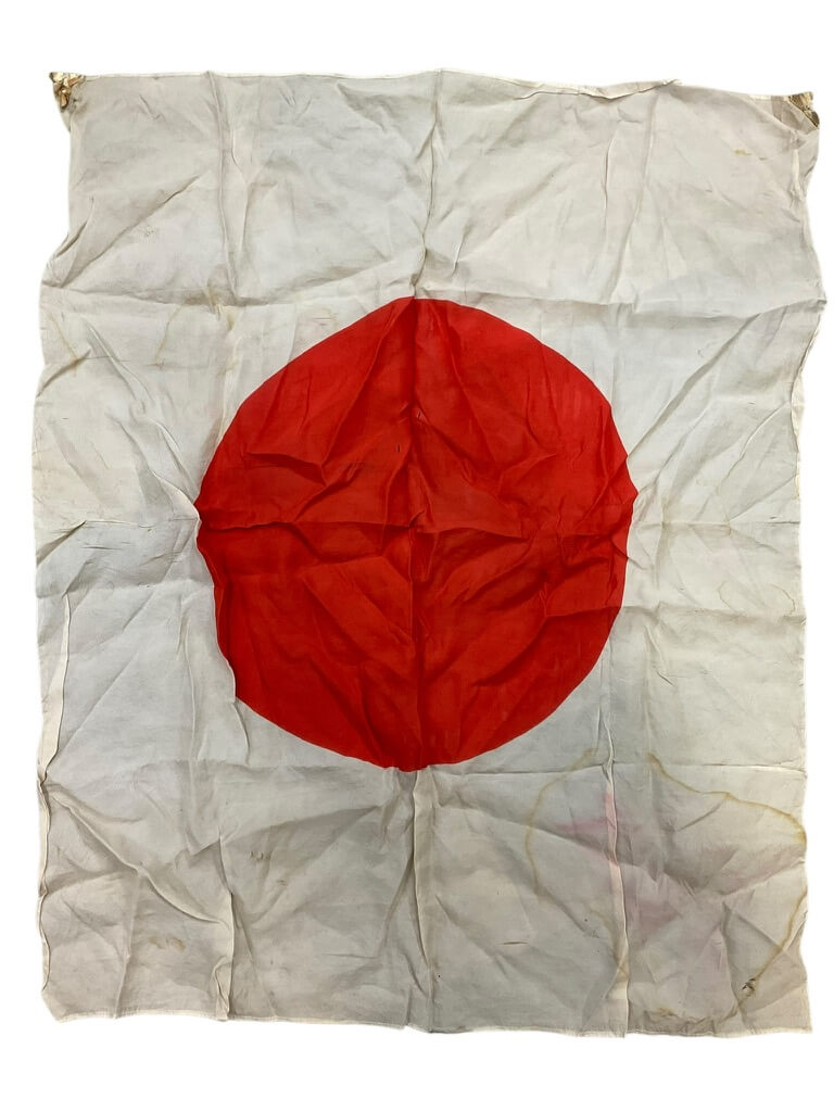 This is a historically significant WW2 Japanese Flag measuring 34 x 28 inches. The flag features the iconic red sun symbol, also known as the ‘Rising Sun’, set against a crisp white background, which embodies the national ethos of Japan as a ‘Land of the Rising Sun’. It is an authentic replica of the flag used by Japan during World War II, making it an invaluable collector’s item for history enthusiasts and war memorabilia collectors. The flag is made from high-quality, durable material that captures the flag’s original texture and design. Despite its age and historical significance, the flag is in excellent condition, with the colors still vibrant and the fabric intact. This flag serves as a powerful reminder of a significant period in global history.