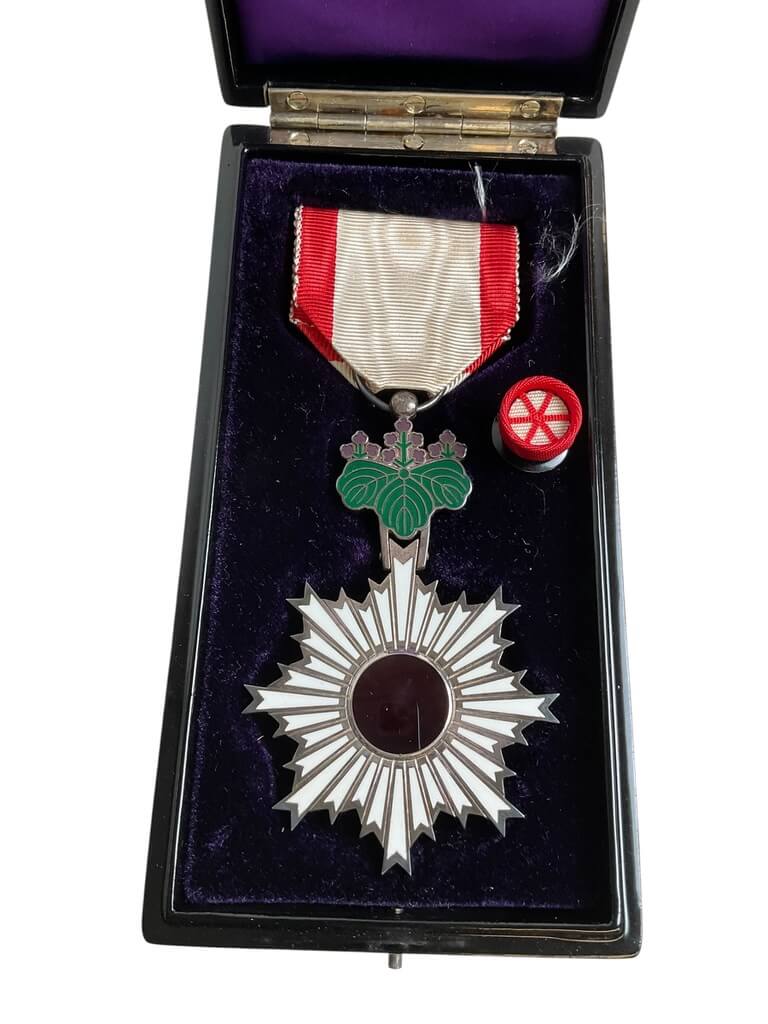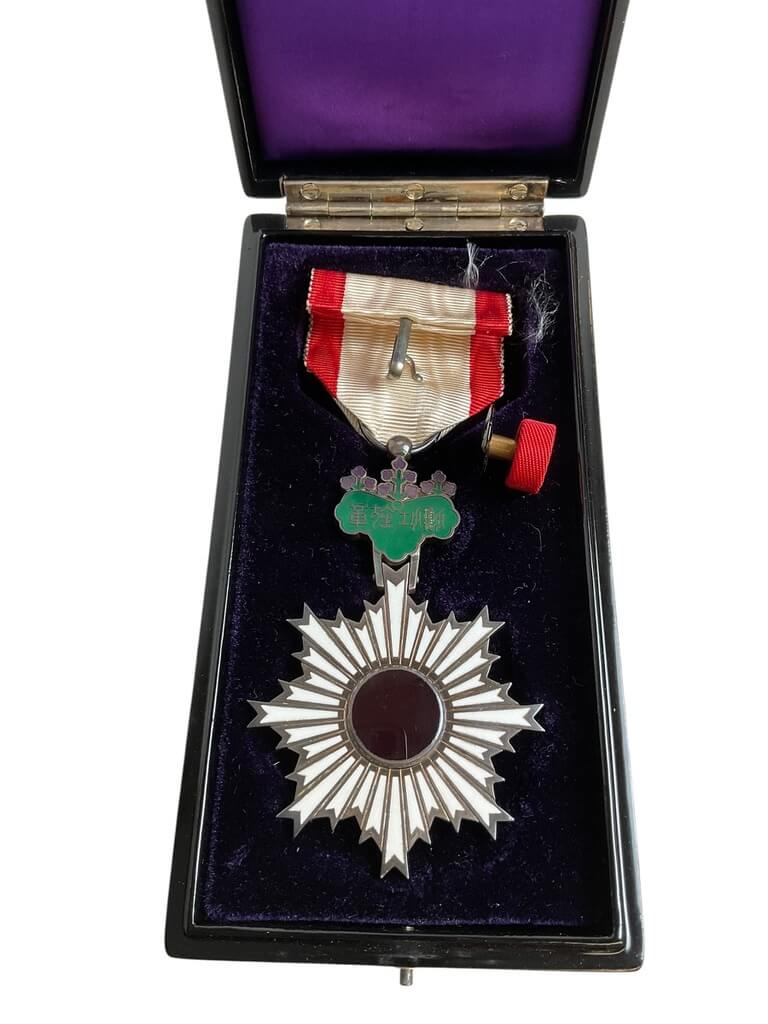 WW2 Japanese Order of the Rising Sun 6th Class Full Size Medal In Case With Rosette