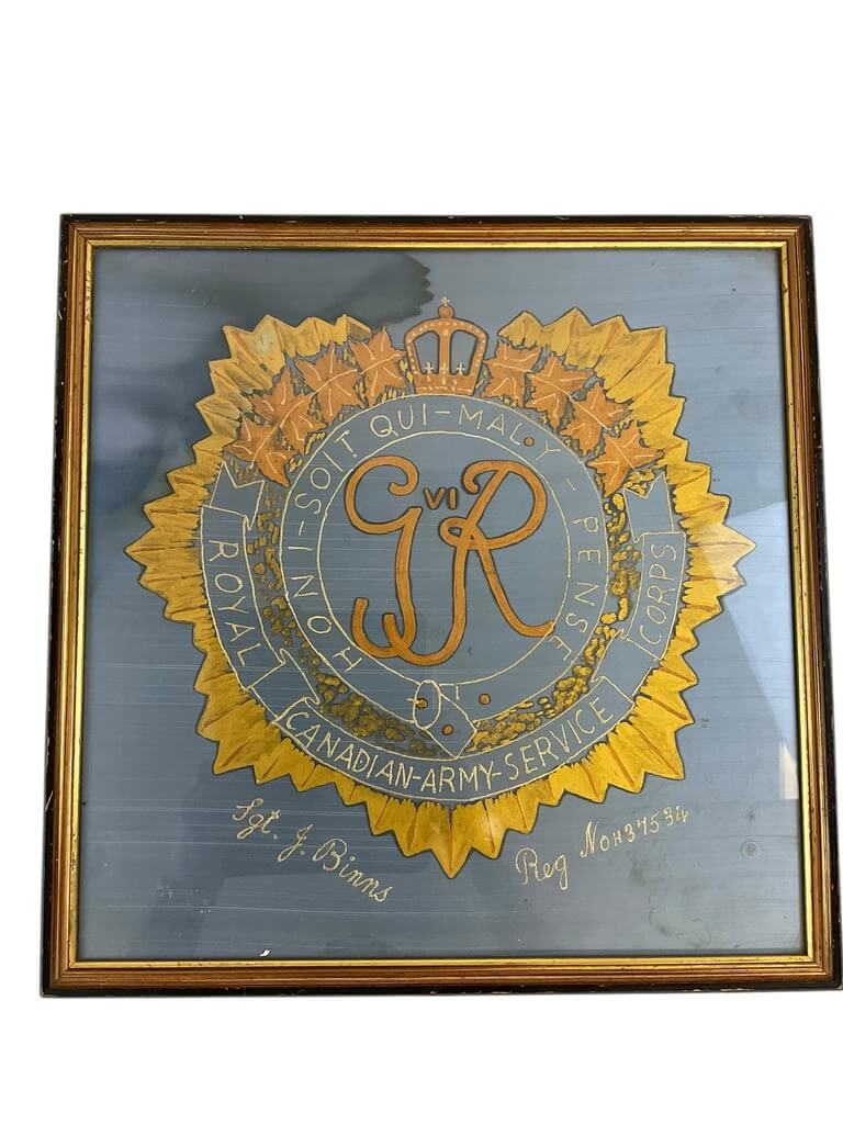 WW2 Royal Canadian Army Service Corps RCASC Painted Silk 17 X 17 Named Sgt J Binns