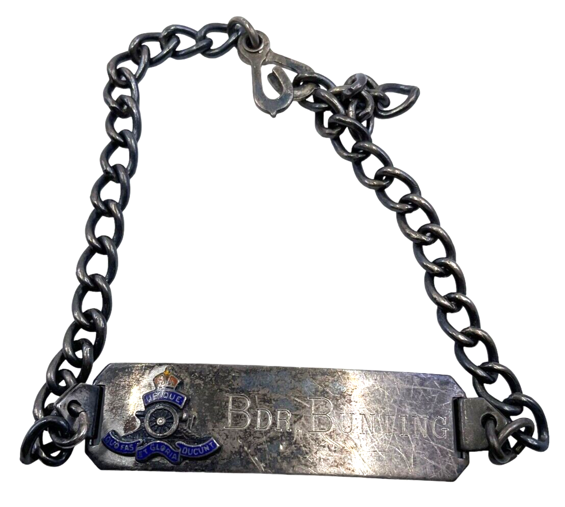 WW2 Royal Canadian Artillery RCA Named Bunting X Battery Silver ID Bracelet