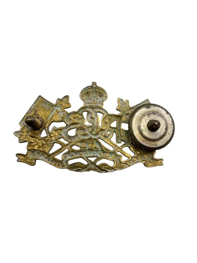 This product is a remarkable artifact from World War II – a single collar from the distinguished uniform of the Royal Canadian Corps of Signals Officers. The Corps of Signals was crucial in maintaining communications during the war, making this piece a significant historical item. Made from high-quality brass, it features the Corps’ emblem, an intertwined “C” and “S” with a crown above, signifying their royal status. The collar is in great condition, considering its age, with its original patina still intact. The design and craftsmanship reflect the pride and prestige associated with the Royal Canadian Corps. This collar single is not just a piece of military memorabilia but a testament to the brave communication officers who served in WWII. It is an ideal collectible for history buffs, military enthusiasts, or anyone interested in Canadian history.