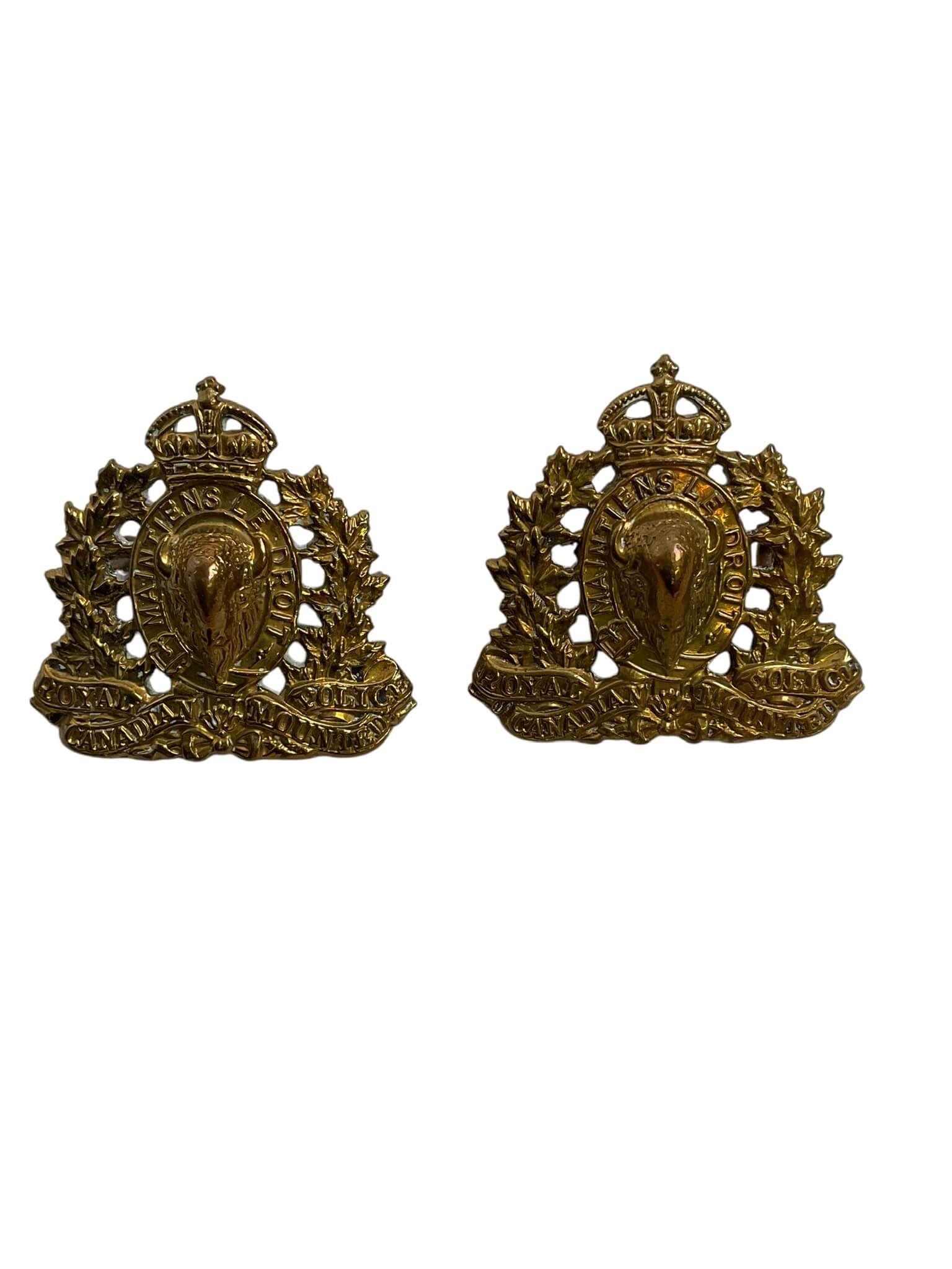 This product features a pair of WW2 Royal Canadian Mounted Police Collars Insignia, an emblematic representation of Canada’s federal law enforcement history. These insignias are meticulously crafted, preserving the authentic design and details of the period. Each insignia exhibits a striking depiction of the RCMP’s iconic symbol, exuding a sense of duty, honor, and patriotism. Made from high-quality materials, these notable insignias have successfully withstood the test of time, maintaining their original luster and appeal. These items are not just mere accessories, but significant historical artifacts that reflect the valiant service of the Royal Canadian Mounted Police during World War II. They are perfect for collectors, historians, or anyone interested in Canada’s rich military history.