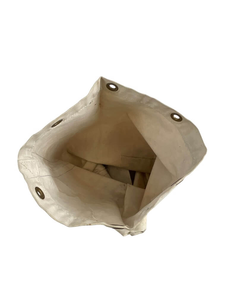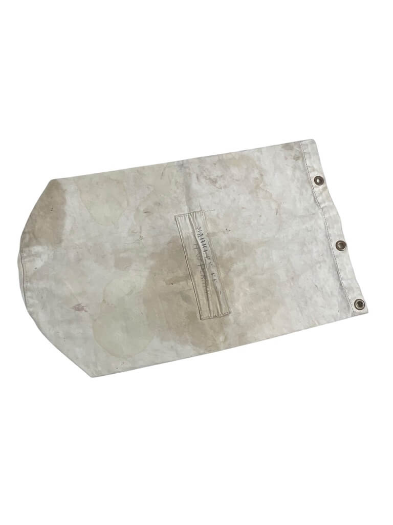 This WW2 Royal Canadian Navy Large Duffle Bag is a rare and unique piece of military history, measuring 32″ x 20 1/2″. It once belonged to a brave serviceman, as evidenced by the name inscribed on it. Constructed using robust and durable materials, this bag has stood the test of time, preserving its original character and patina. It features the quintessential cylindrical shape of a traditional duffle bag, complete with a rope closure at the top. Despite its age, the bag is in great condition, with the original navy blue color still vibrant. It is a remarkable artifact from the World War II era and the Royal Canadian Navy, offering a tangible link to the past for military enthusiasts, historians, or collectors. This is not just an item, but a piece of Canadian military history that tells a story of courage, honor, and service.