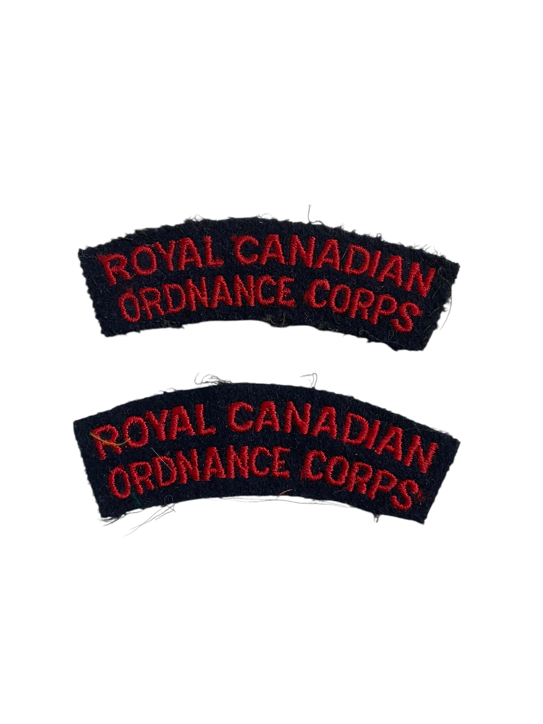 WW2 Royal Canadian Ordnance Corps Shoulder Titles Insignia Pair