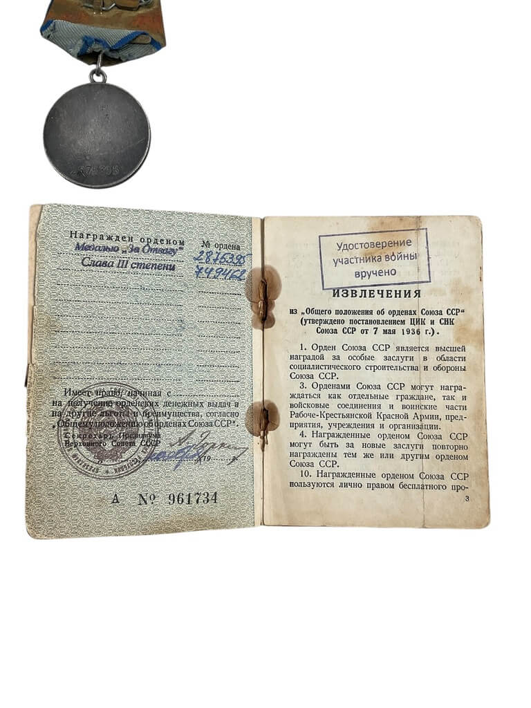 WW2 Russian Soviet Order of Glory and Bravery Full Size Medals With Docs