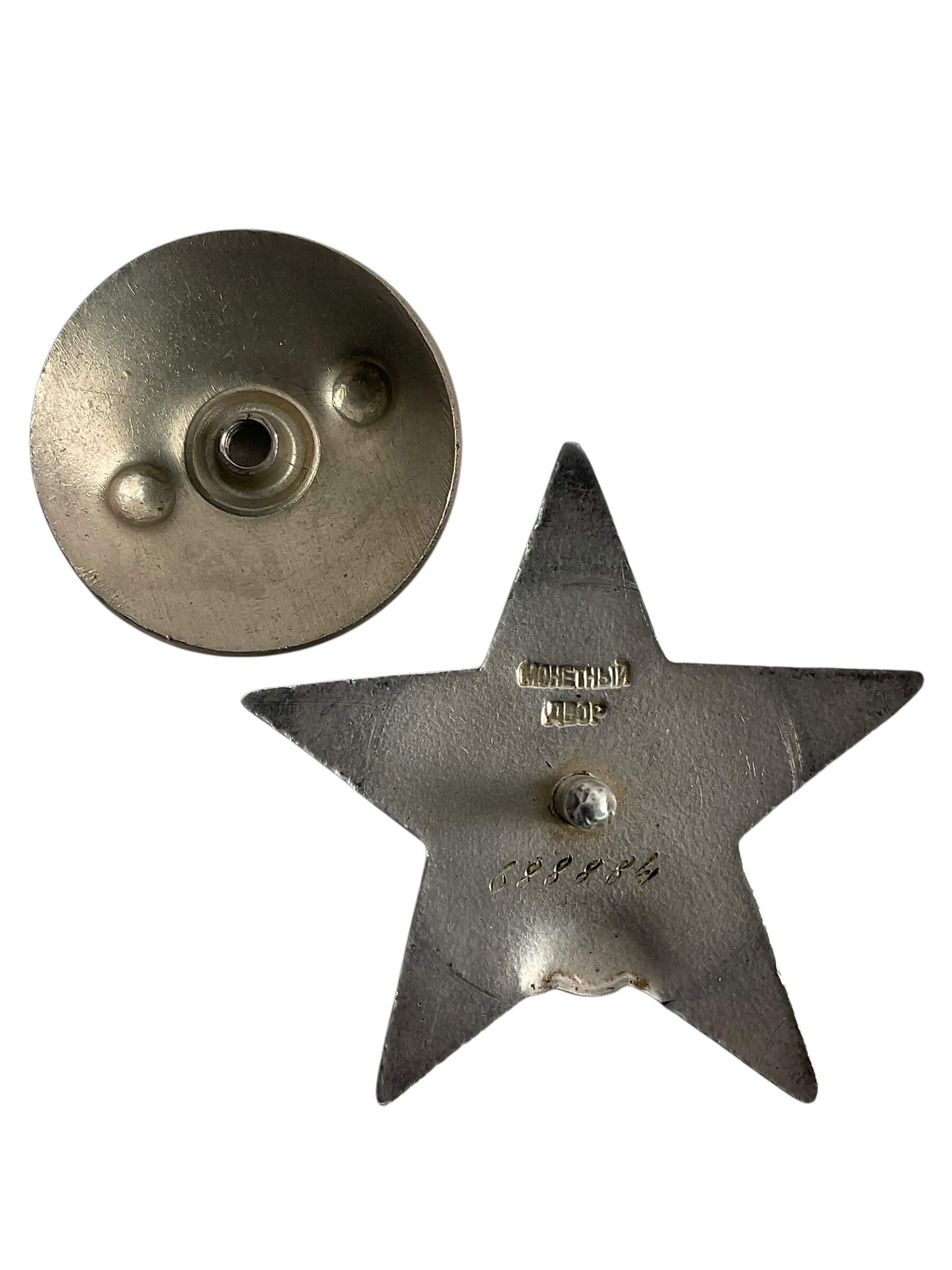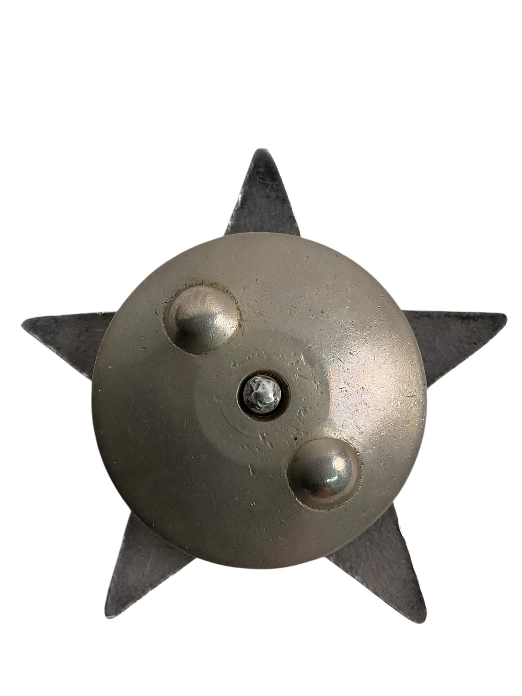 The Order of the Red Star was a Soviet military decoration established in 1930 and awarded for exceptional service in the defense of the Soviet Union during wartime and peacetime. This example dates from the 1944 era, a period marked by intense conflict on the Eastern Front during World War II. The order consists of a silver five-pointed star, overlaid with red enamel, bearing the image of a Red Army soldier with a rifle and the inscription “Proletarians of all countries, unite!” along the border. At the bottom, a hammer and sickle emblem appears beneath the soldier. The reverse is typically stamped with the serial number and features a screwback fitting for attachment to uniforms. Recipients included both officers and enlisted personnel for acts of bravery, leadership, or significant contributions to military operations. The Order of the Red Star is recognized as an important Soviet military honor from the World War II period.
