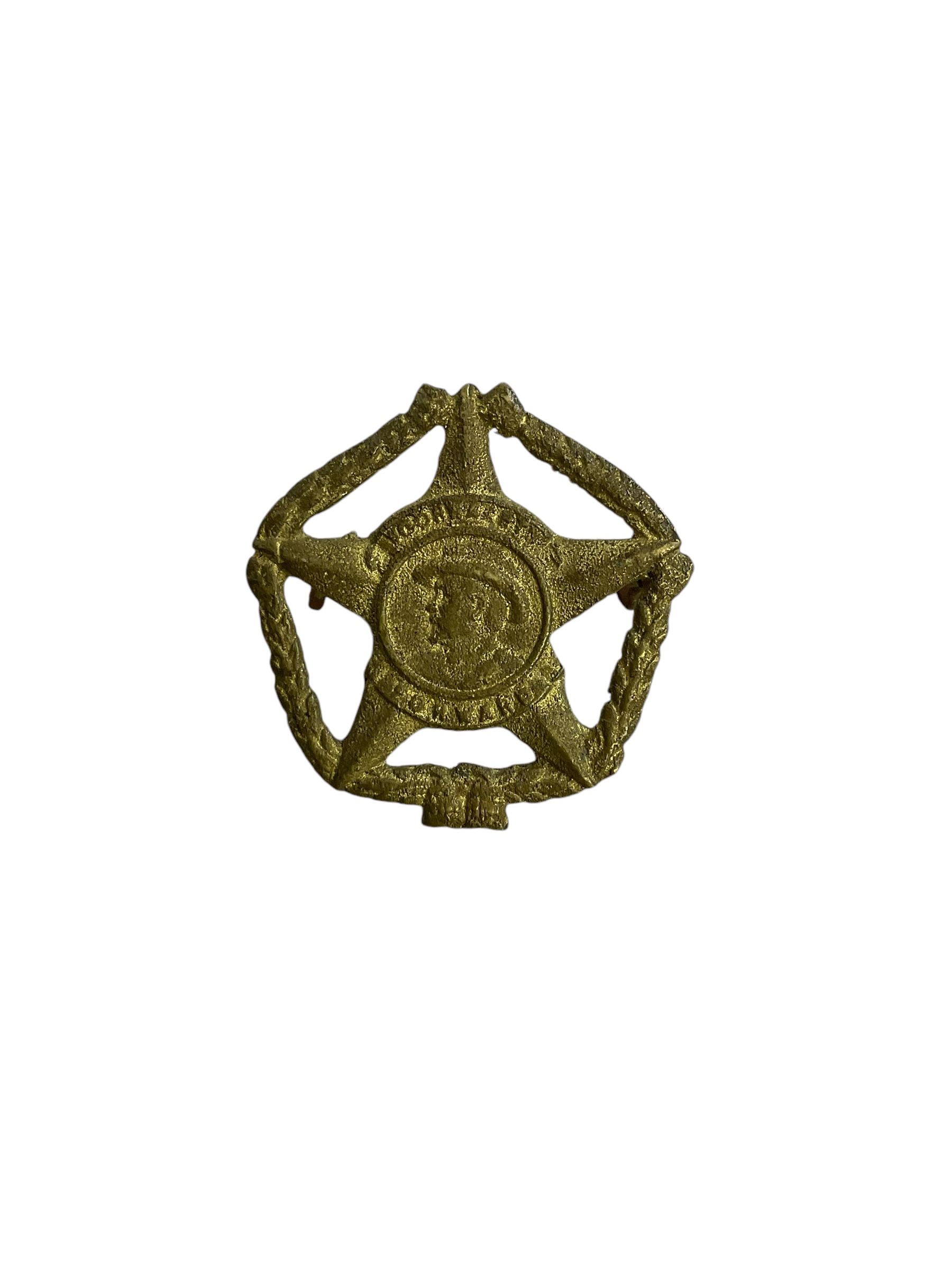 The ‘WW2 South African Army Woorwaarts Cap Badge’ is a historical artifact dating back to the time of the Second World War. This distinctive emblem was worn by members of the South African military forces, specifically on their caps as a symbol of identity and unity. The word ‘Woorwaarts’ in Afrikaans translates to ‘Forward’, which was a motto used by the South African forces during the war, embodying their spirit of determination and resilience. The badge features intricate designs. Made from brass, the badge has weathered the test of time, offering a tangible connection to South Africa’s wartime past. It is of significant historical and cultural interest to collectors, historians and military enthusiasts.