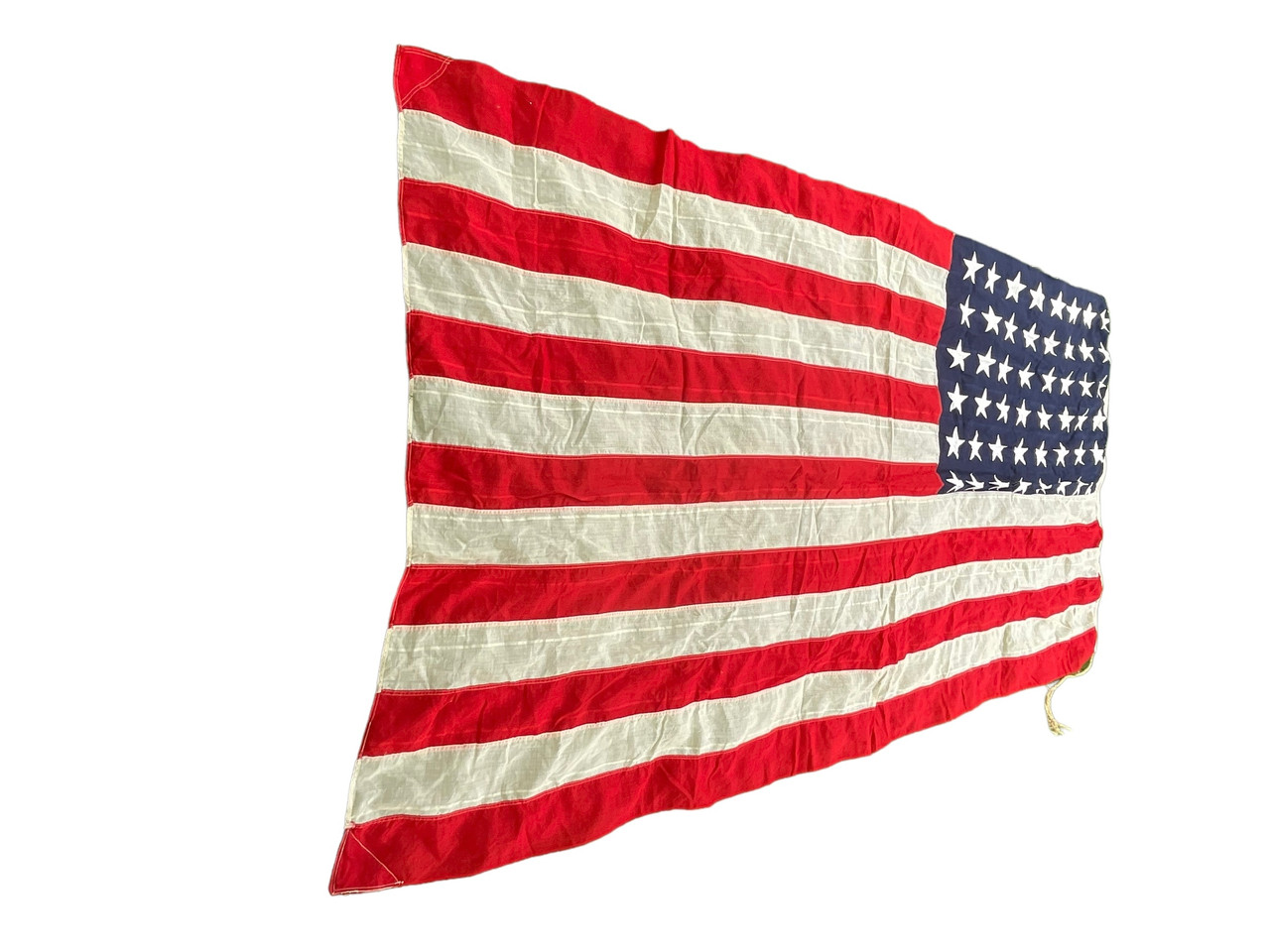 This historic WW2 US 48-Star Bunting Flag measures an impressive 12 feet by 6.5 feet, making it a striking piece for any collection or display. Expertly crafted in Canada during World War II, this flag features 48 stars arranged in the pattern used from 1912 to 1959, before Alaska and Hawaii were admitted to the Union. Made from durable bunting material, it was designed to withstand various weather conditions, symbolizing the resilience and unity of the United States during a pivotal period in history. Perfect for historians, collectors, and enthusiasts, this flag is more than just a decorative item; it’s a tangible piece of wartime heritage. Whether displayed indoors or outdoors, it serves as a poignant reminder of the past and a tribute to those who served.