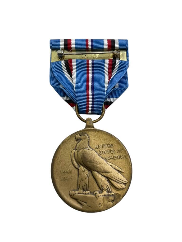 This is a full-size replica of the WW2 US American Campaign Medal, a prestigious military honor that was awarded to the brave members of the armed forces who served in the American Theater of Operations during World War II. The medal, made with meticulous attention to detail to authentically replicate the original’s design, features a bronze-colored disc with an eagle emblem in the center, signifying the United States’ strength and freedom. The ribbon boasts a patriotic tricolor design—red, white, and blue—symbolizing American valor and resilience. This collectible not only serves as a tangible reminder of the immense sacrifices made during the war, but also makes a perfect addition to any military memorabilia collection. Whether you are a history enthusiast or a veteran, this WW2 US American Campaign Medal is a piece of history that you can keep and cherish.