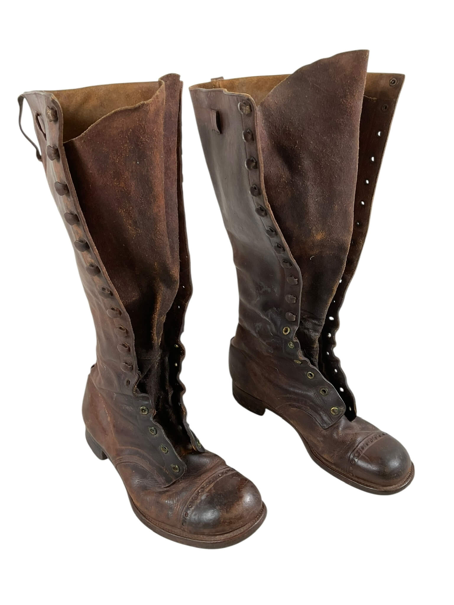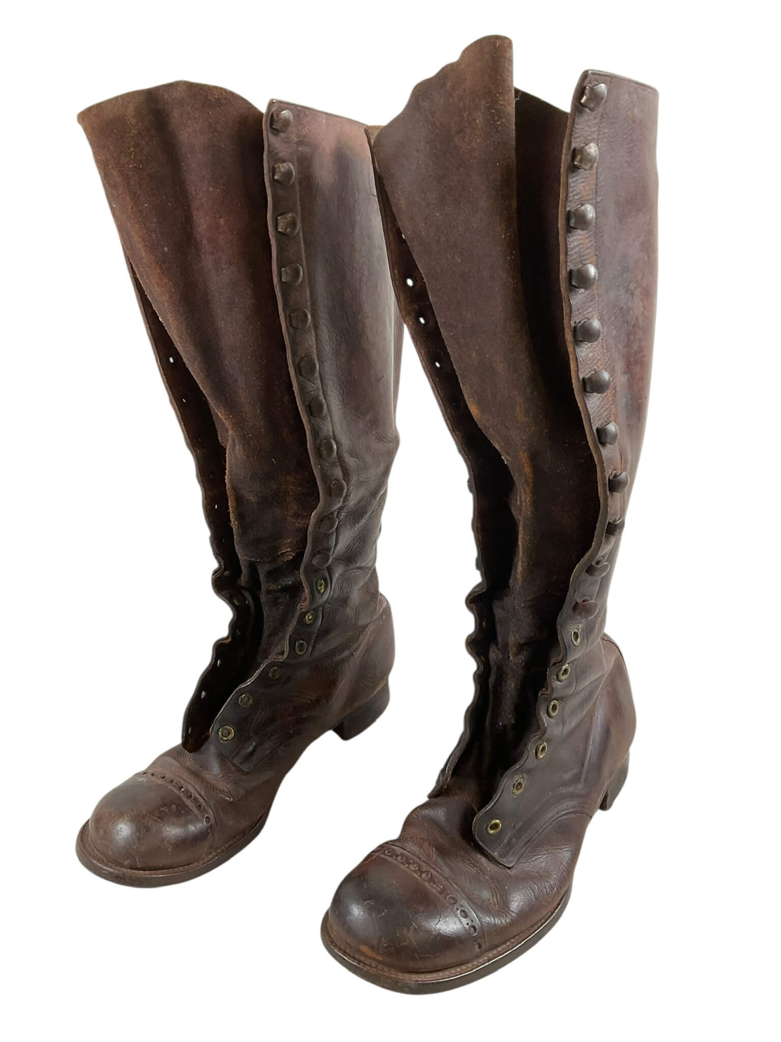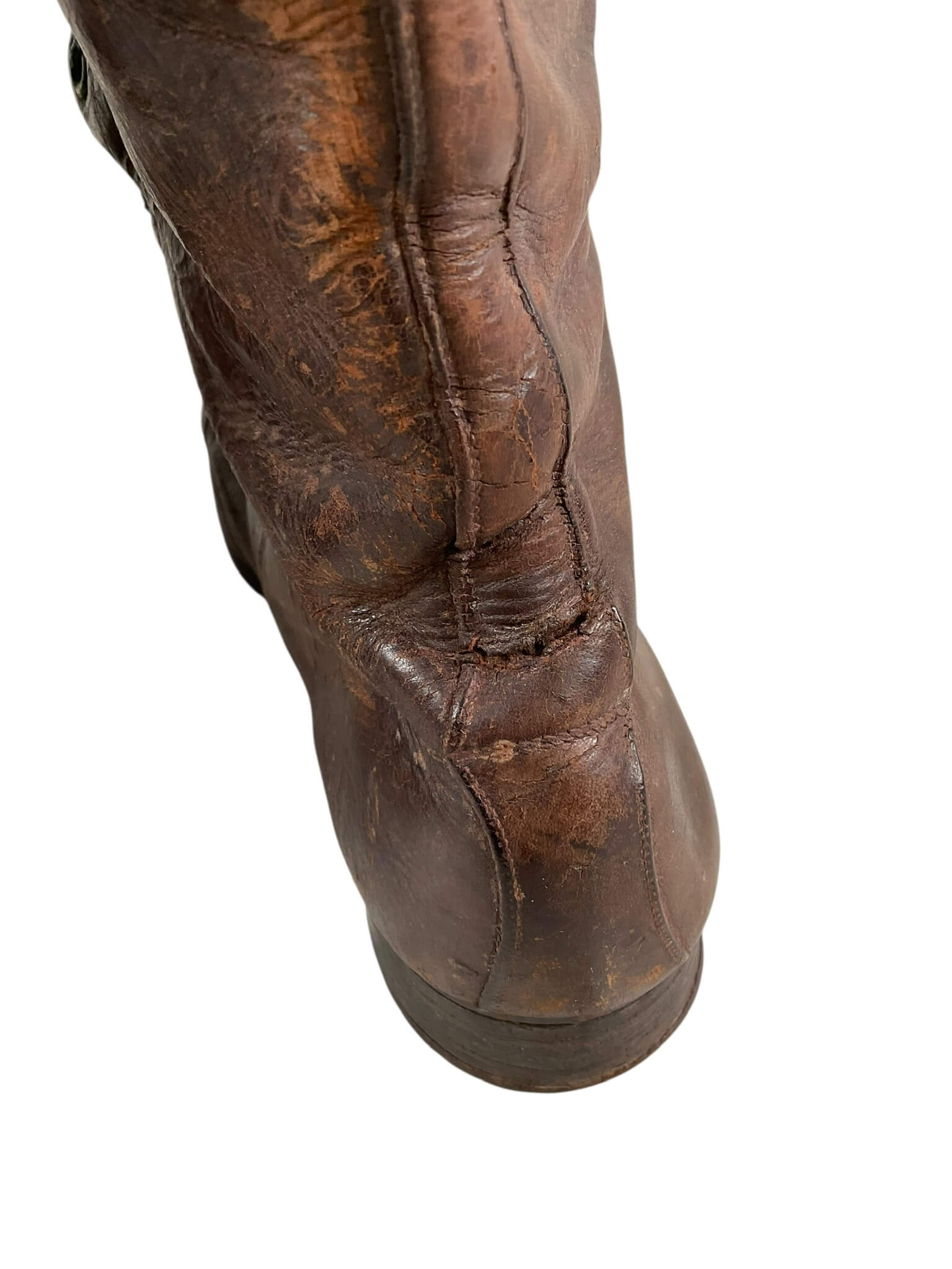 The ‘WW2 US Army Blucher High Top Boots’ are a remarkable piece of military history, reflecting the robust and rugged nature of the American soldiers during the Second World War. These boots, featuring a unique Blucher design with high-top style, were designed for durability, comfort, and protection in various terrains and weather conditions. They were crafted from high-quality leather, ensuring longevity and resistance to wear and tear. The boots come with thick soles, providing excellent grip and stability, vital for soldiers on the battlefield. The lacing system was designed for a secure fit, allowing for quick adjustments. These boots not only serve as a nostalgic memorabilia for military enthusiasts but also stand as a testament to the resilience and determination of the US Army during one of the most challenging periods in history.