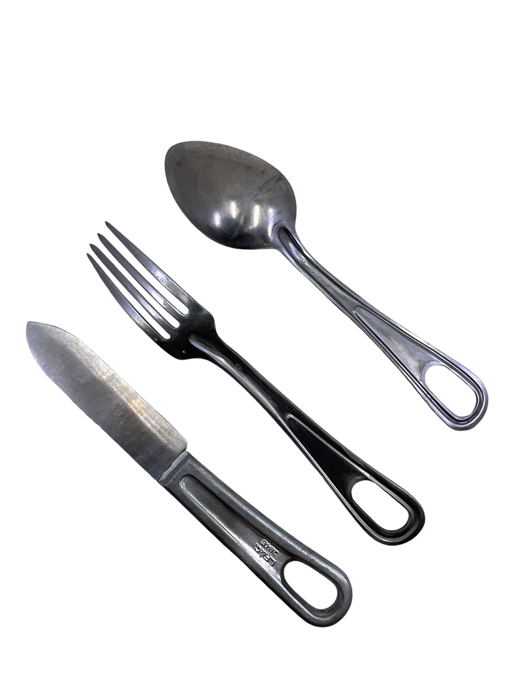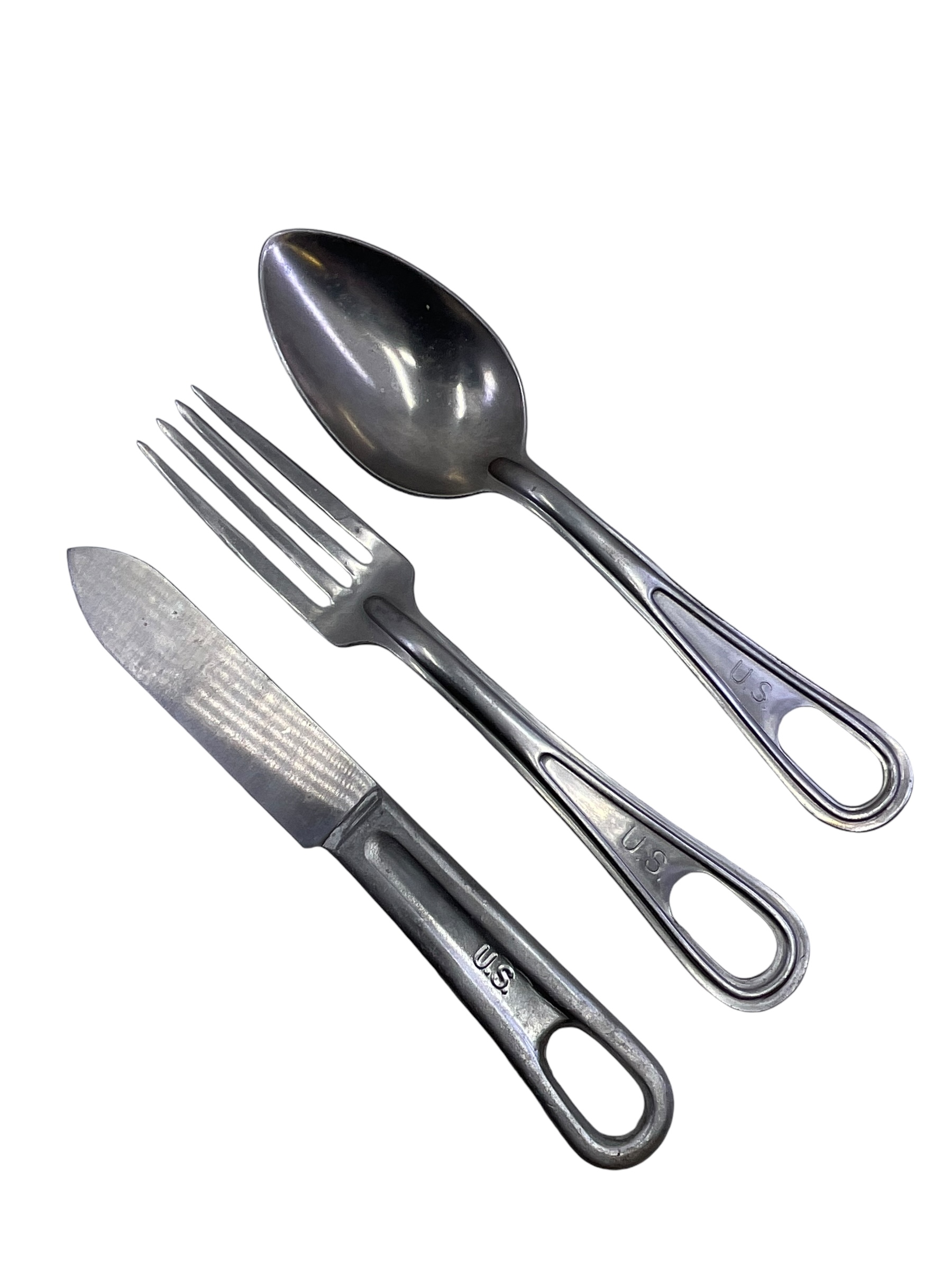 This WW2 US Army Cutlery Set is a remarkable piece of military history. The set comprises of a Knife, Fork, and Spoon, made with robust materials, designed to withstand the tough conditions of war. Each piece bears the official US Army stamp, signifying its authenticity. The utensils are compact, lightweight, and designed to be easily carried, reflecting the mobility needs of soldiers during the war. The knife is sharp and sturdy, the fork prongs are strong and durable, and the spoon has a deep basin, suitable for both solid and liquid food substances. Despite its age, this cutlery set remains in excellent condition, maintaining its functionality and historical value. This is not just a piece of cutlery but a reflection of the soldier’s life during WW2, making it an ideal collector’s item for military enthusiasts and history buffs.
