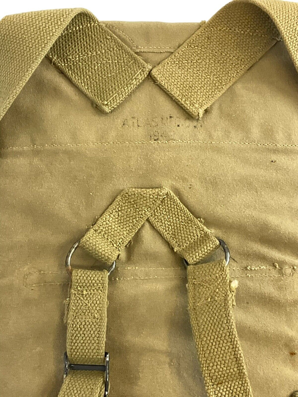 The ‘WW2 US Army Equipment Group Belt 1928 Haversack Canteen & Pouches With Dates 2’ is a meticulously curated collection of authentic World War II gear. This set includes the iconic 1928 Haversack, a staple of the US Army’s field equipment, designed for durability and extensive use. The accompanying belt is robust and historically accurate, providing a foundation for the attached canteen and multiple pouches, which are essential for carrying personal items and ammunition. Each piece in this group carries distinctive date markings, offering a genuine glimpse into the past and a tangible connection to the soldiers of the era. This collection is perfect for historians, collectors, and reenactors aiming to accurately represent the gear used by American troops during the Second World War. The inclusion of date markings makes this set not only a functional ensemble but also a significant artifact for study and display.