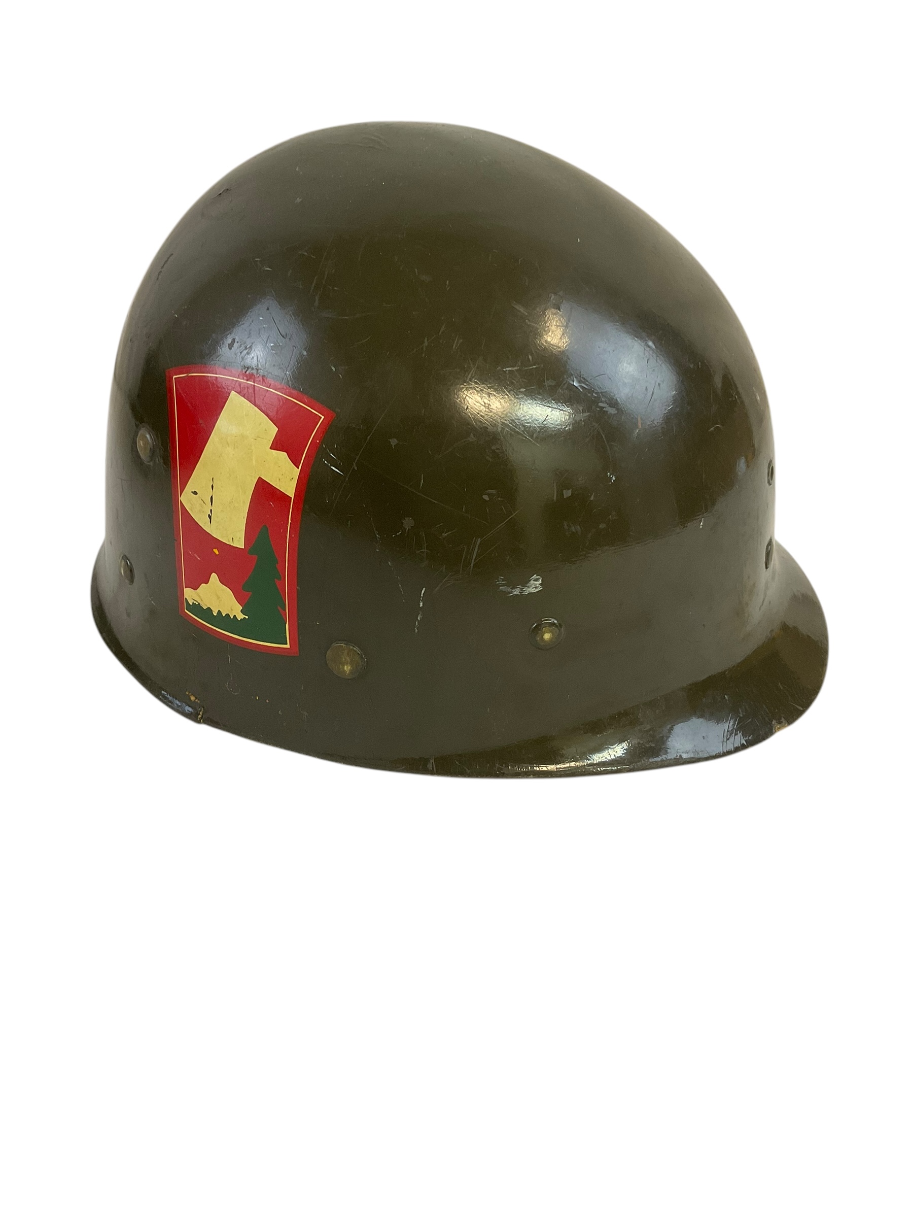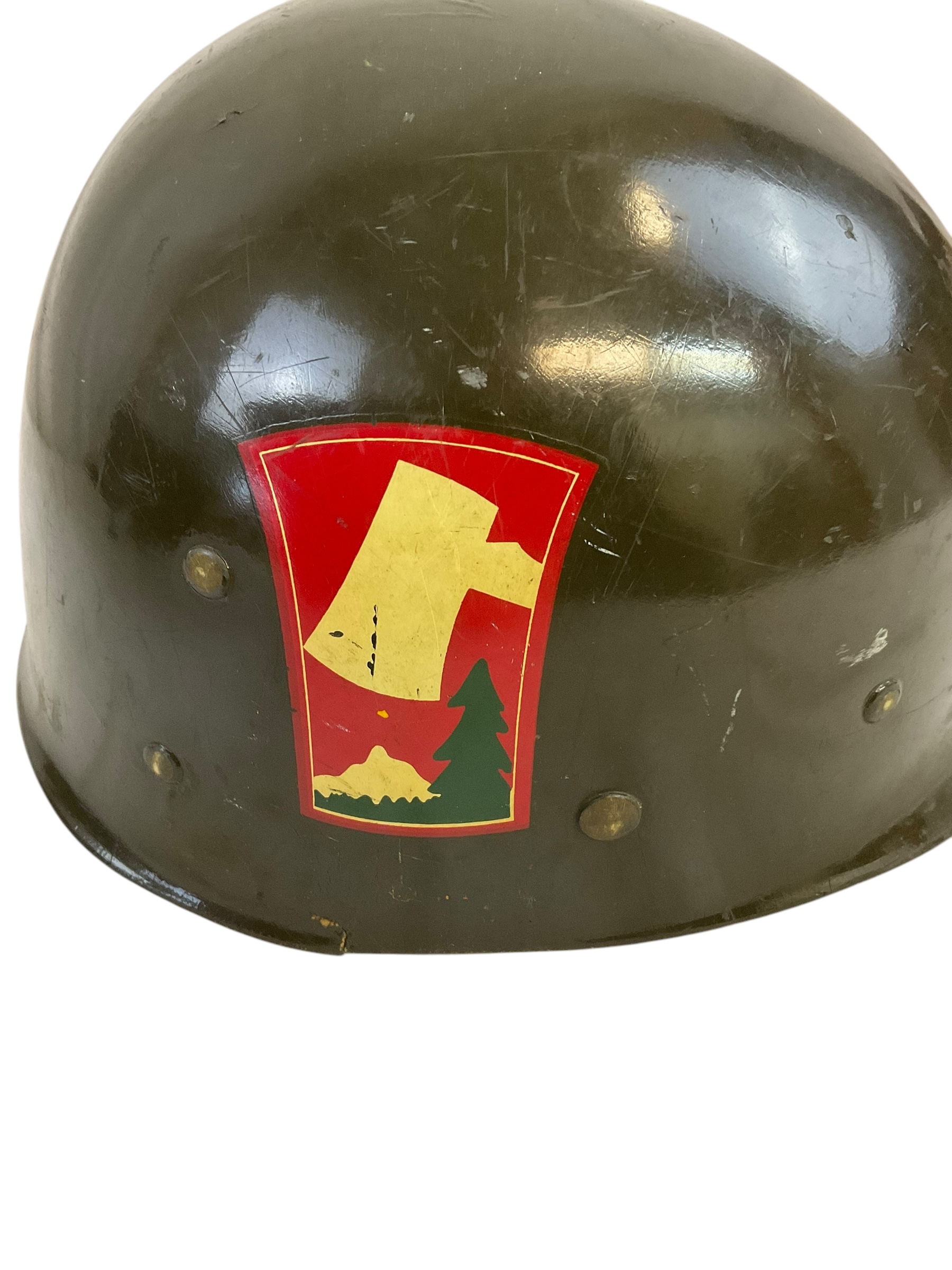 This product is a genuine WW2 US Army M1 Helmet Liner, a rare historical piece manufactured by Firestone. The liner, known for its robustness and durability, was an essential component of the M1 helmet, providing comfort and additional protection to the wearer. What sets this particular liner apart is the 70th Infantry Division (ID) decal, a symbol of the ‘Trailblazers’ who fought courageously in the European Theatre. The decal is well-preserved and adds a distinct authenticity to the artifact. This helmet liner is not just a piece of military equipment, but a piece of history that encapsulates the bravery, resilience, and sacrifice of the soldiers during World War II. Perfect for historians, collectors, or those with an interest in military memorabilia.
