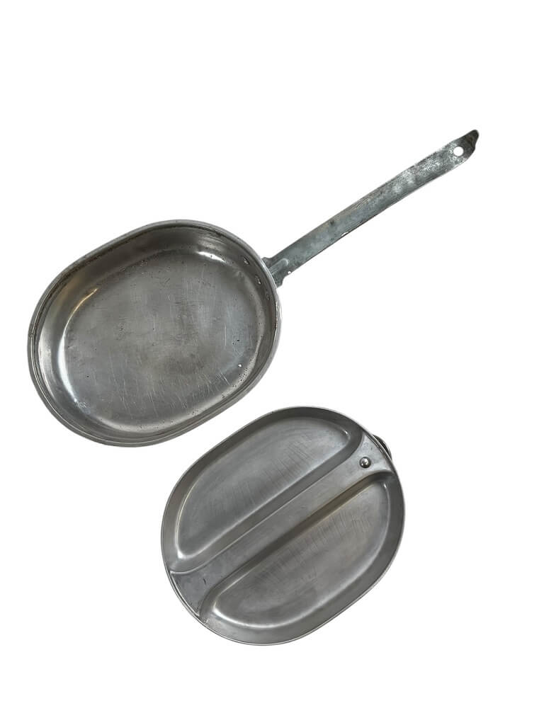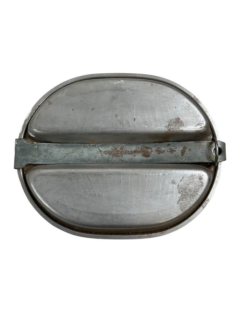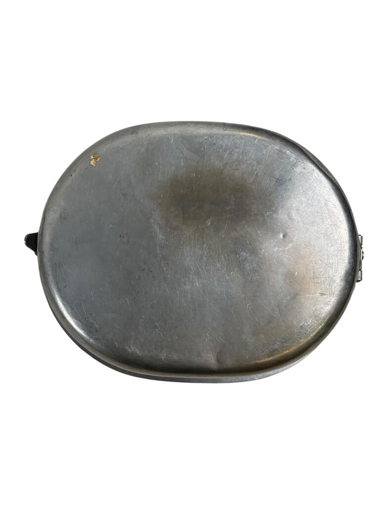 This WW2 US Army Mess Tin Dated 1945 is an authentic piece of military history. Crafted with durable materials to withstand the rigors of war, it is a testament to the resilience of the generation that fought in the World War II. The mess tin, featuring its original date stamp of 1945, served as a critical tool for American soldiers, providing a means to cook and eat their meals while stationed in far-flung battlefields. Compact and practical, it was designed to be easily transported in a soldier’s pack. This item is not only a collectible, but a symbol of American history, offering a tangible connection to the past and the immense sacrifices made by the Greatest Generation. Its weathered appearance adds to its charm, standing as a silent witness to the events of one of the most significant periods of the 20th century.