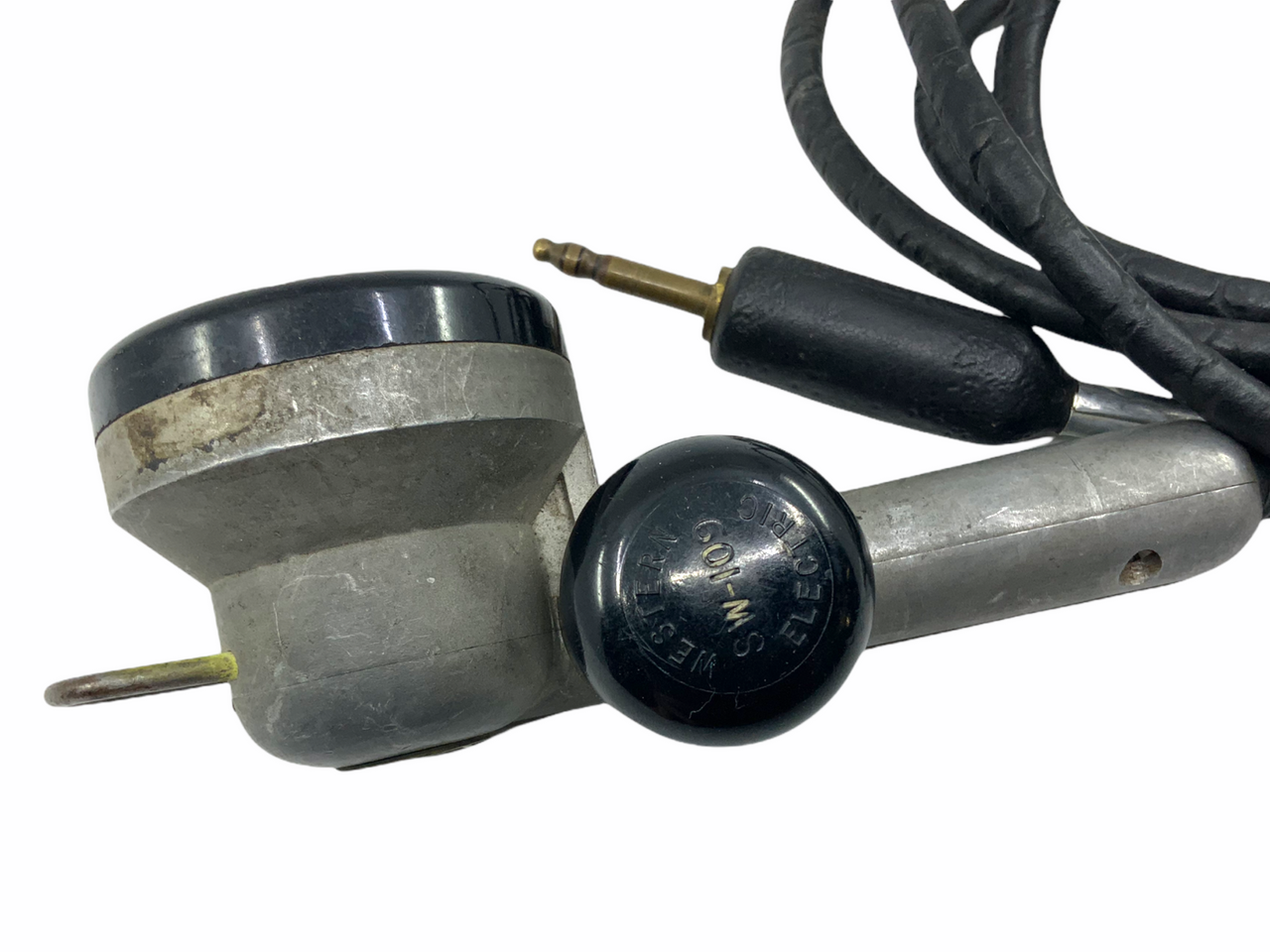 The WW2 US Army Microphone T-17 & Lead is an authentic piece of military communication equipment from the Second World War. Known for its robust design and reliable performance, the T-17 was extensively used by the US Army for various communication needs during the war. This microphone is equipped with a durable lead that ensures a strong connection, making it an essential tool for clear and effective battlefield communication. The T-17 features a sturdy metal construction, capable of withstanding harsh conditions, and a press-to-talk button for quick and efficient operation. Collectors and history enthusiasts will appreciate this piece for its historical significance and the role it played in ensuring seamless communication in critical wartime scenarios. The T-17 & Lead not only serves as a tangible link to the past but also as a testament to the technological advancements and ingenuity of the era.