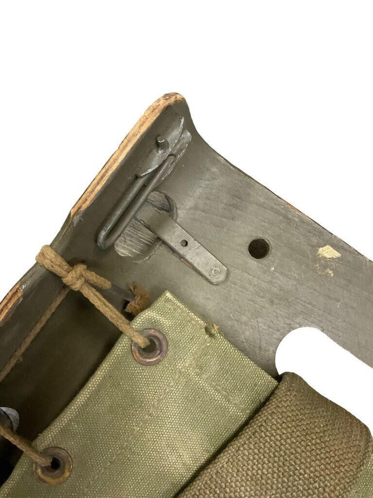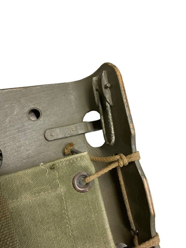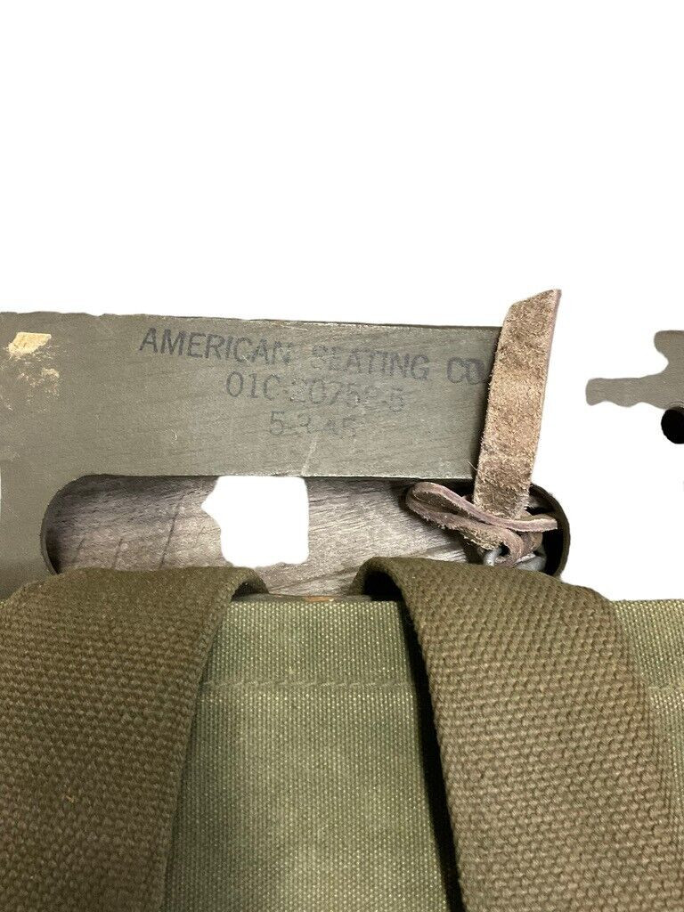 The WW2 US Army Pack Board Named Frobisher, dated 1945, is a remarkable piece of military history. This authentic pack board, crafted during the final year of World War II, bears the name ‘Frobisher,’ presumably of the soldier who once relied on it. The pack board was an essential gear for American infantrymen, designed to carry heavy loads of supplies, ammunition, and personal effects. Its robust construction and thoughtful design reflect the rigorous demands of wartime logistics and the reliance on well-engineered equipment. This particular pack board not only represents the technological advancements of the era but also serves as a personal connection to the soldiers who served. Collectors and historians alike will find this piece invaluable, as it offers a tangible link to the experiences of those who contributed to the Allied victory in 1945.
