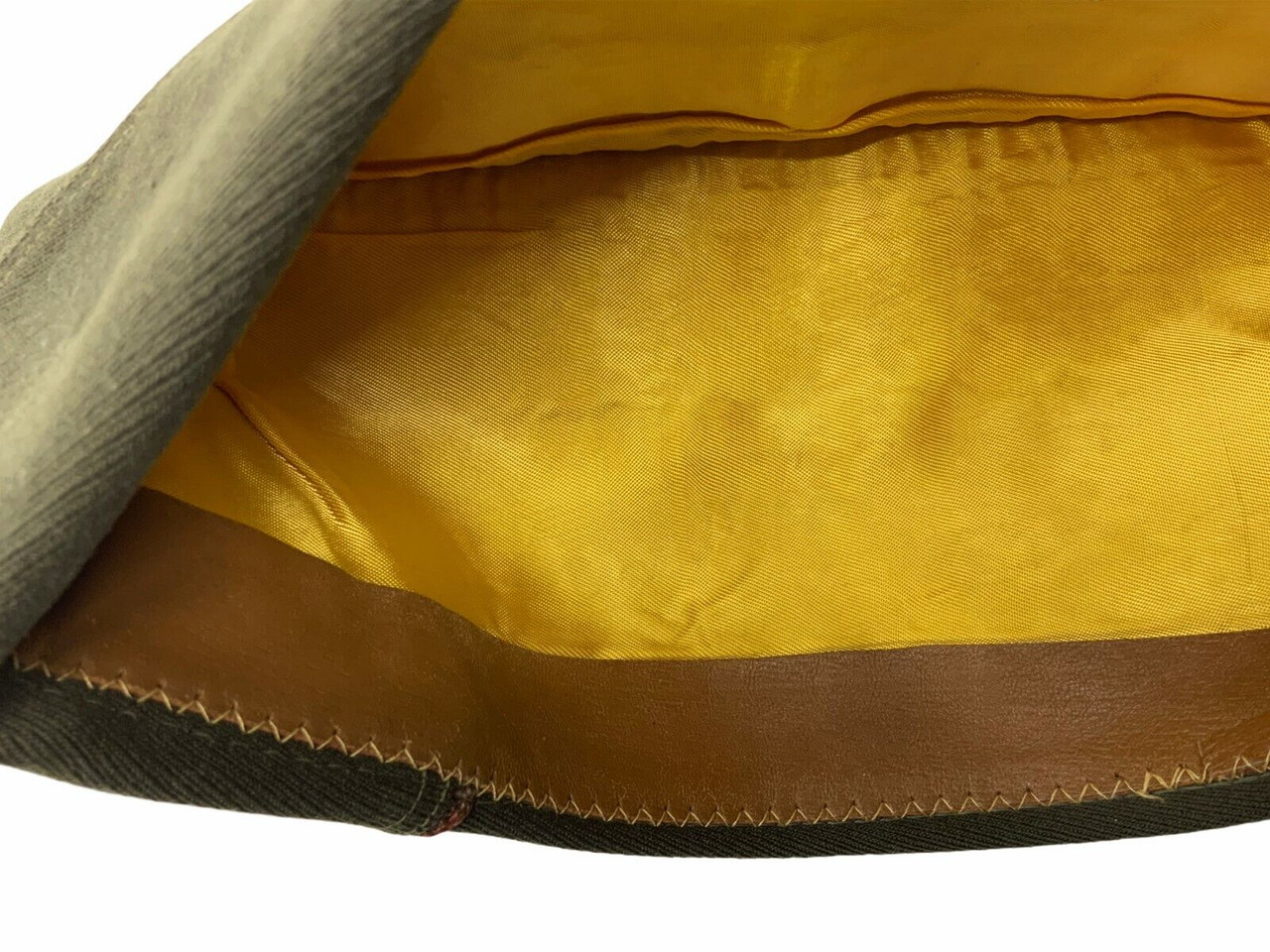 This World War II US Army Piped Wedge Cap in Size Small is a classic example of military headgear from the 1940s. Crafted with precision and attention to detail, this cap features the distinctive piping that signifies its association with a specific branch or unit of the US Army during the Second World War. The wedge cap, often referred to as a garrison cap, is known for its convenient foldability and ease of storage. Made from high-quality materials that have withstood the test of time, this cap is not only a piece of military history but also a testament to the craftsmanship of wartime apparel. Ideal for collectors of military memorabilia, historians, or anyone with a keen interest in WWII artifacts, this piped wedge cap offers a tangible connection to the past and an intriguing glimpse into the daily life of soldiers during one of history’s most significant conflicts.
