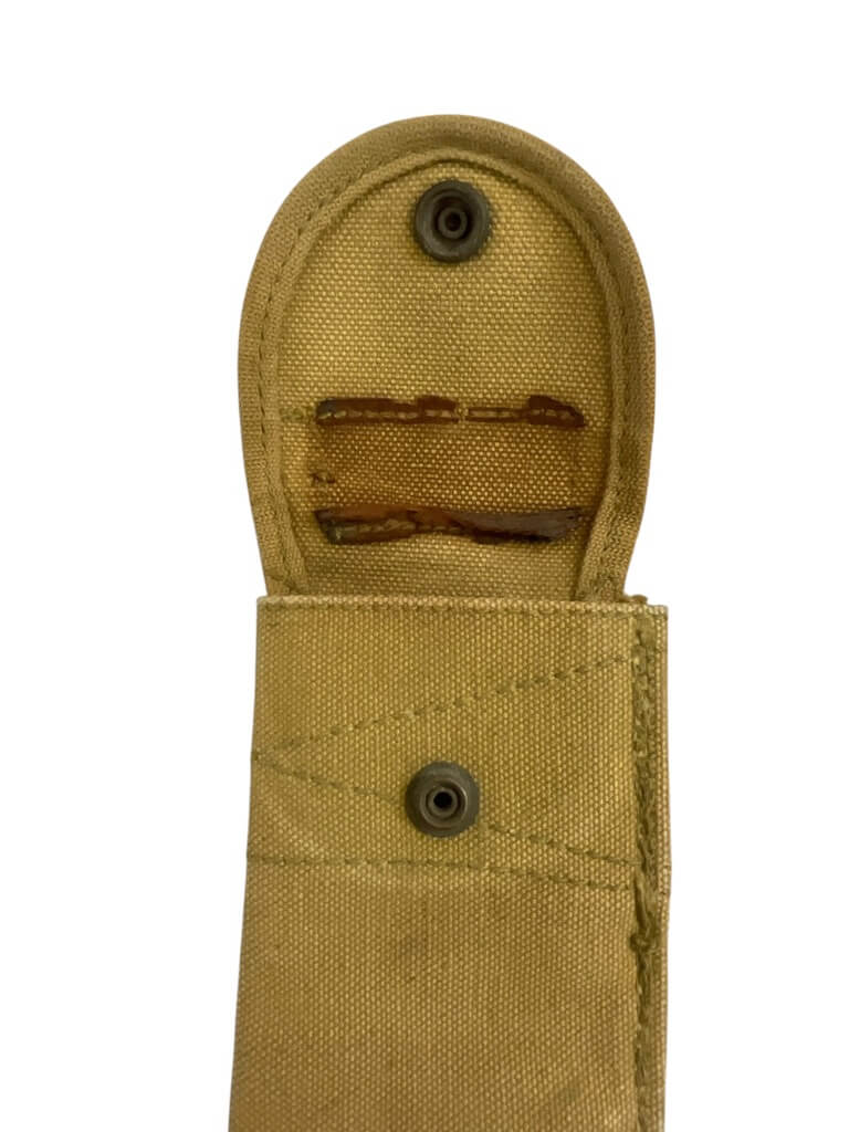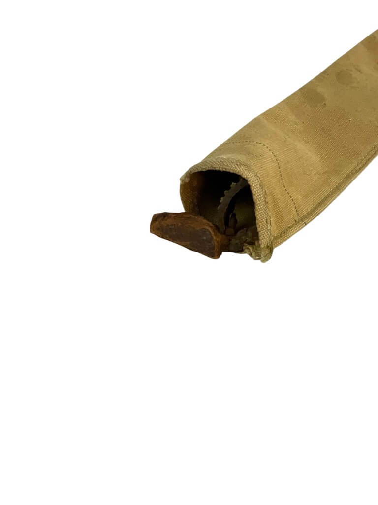 This item is a WW2 US Army Spare Barrel Cover M8 37 X 3 1/4, an authentic piece of military memorabilia from the second World War. It was primarily used to protect and secure spare barrels of the M8 guns which were extensively used during the war. The measurements, 37 X 3 1/4, indicate the size of the barrel it was designed to cover. This cover is made of durable, rugged material, designed to withstand harsh weather conditions and rough handling, typical in war situations. Its design includes a practical and secure closing system. Owning this cover is like owning a piece of history, a symbol of the courageous efforts of the US army during World War II. It is a must-have for any serious militaria collector, history enthusiast, or anyone interested in World War II artifacts.