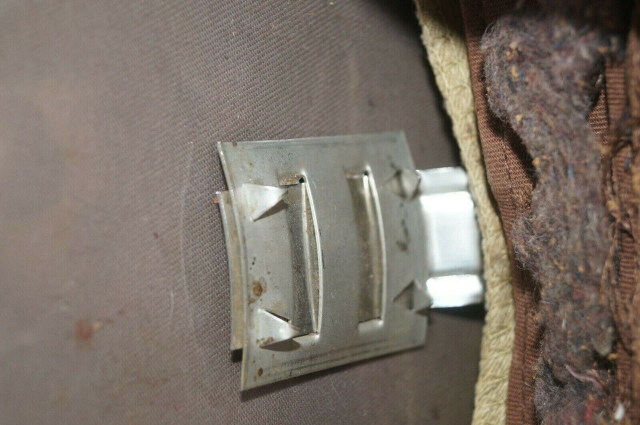 The WW2 US Army Tan Visor Cap is an authentic military collectible from the Second World War, marked with a service number on the inside, giving it a unique historical significance. Sized 7, this cap retains its classic appeal and is in generally good condition, though it does show signs of wear consistent with its age. The peak stiffener has detached and will require reattachment, but the cap remains complete. Additionally, there are a few loose stitches in the sweatband area at the peak, indicating some wear and tear that could use a bit of tender loving care. For collectors, history enthusiasts, or reenactors, this visor cap offers a tangible connection to the brave servicemen of the US Army from WW2. With some restoration, it can be a standout piece in any military memorabilia collection.
