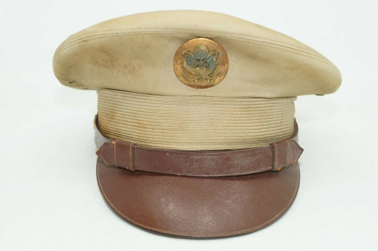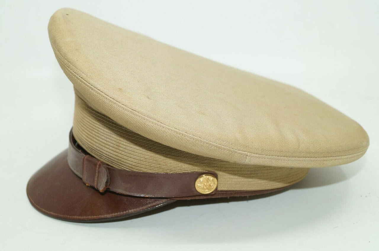 A good used WW2 US Army Tan Visor Cap, service no to the inside of the cap, size 7, in generally good condition, peak stiffener has come loose so would need some attention, though its complete.  Some loose stitches inside the sweatband area at the peak.  In need of some TLC.