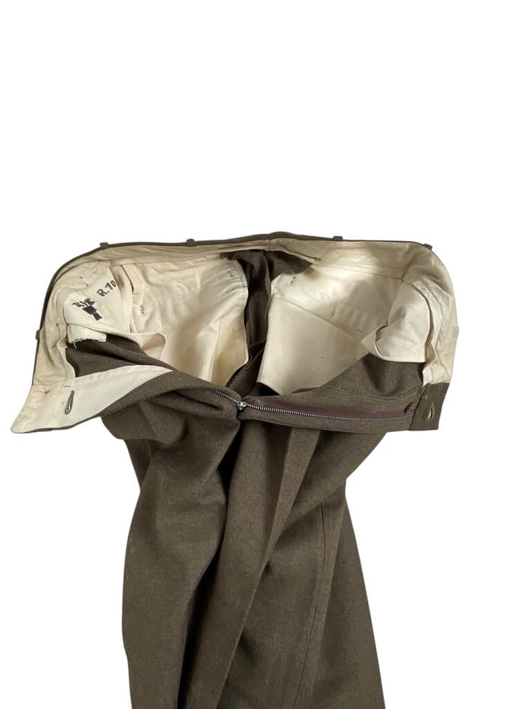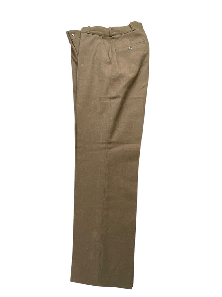 This product listing features an authentic pair of WW2 US Army Trousers, highlighting a remarkable piece of American history. Measuring a 30″ waist and a 32″ inseam, these trousers are an embodiment of the perseverance and strength of soldiers during the Second World War. They showcase the classic olive drab color, a signature of the US Army uniform at the time. Designed for durability and functionality, the trousers are crafted from robust material, capable of withstanding harsh conditions. They feature multiple pockets for practical utility. These trousers are not just a piece of clothing, but a symbol of the sacrifices made by the brave men who served. Whether you’re a collector of militaria, a history enthusiast, or someone who appreciates vintage fashion, these WW2 US Army Trousers make for a unique and fascinating acquisition.