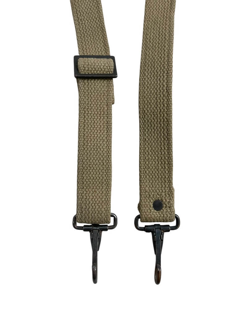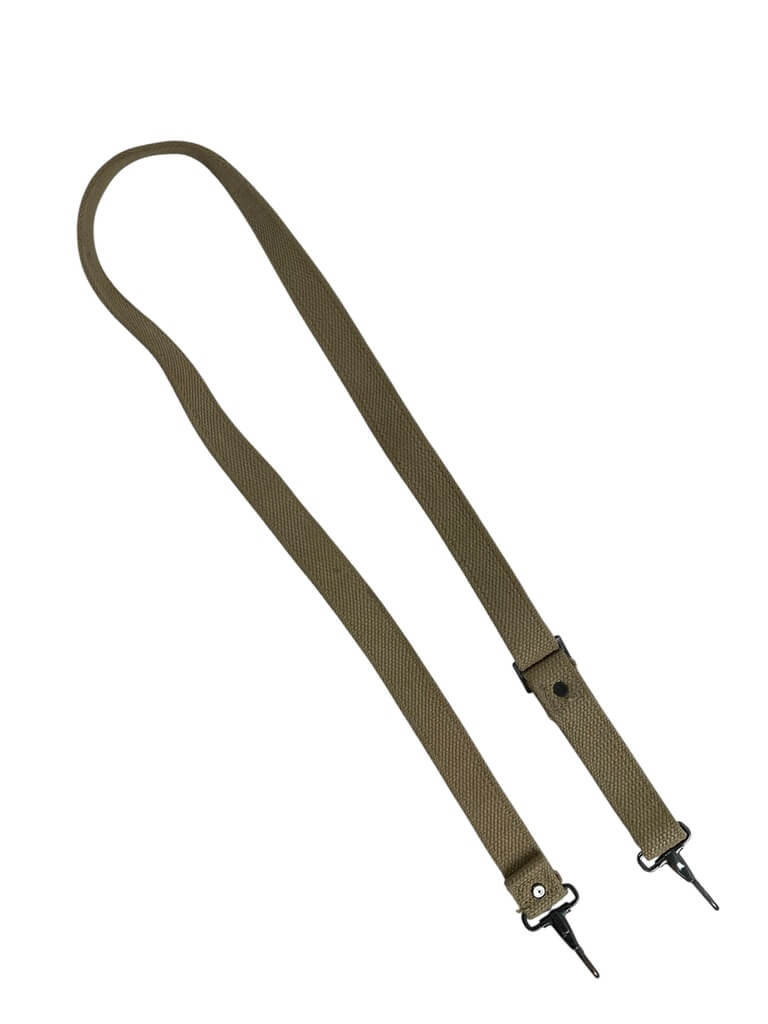 The WW2 US Army Weapons Sling is a historically accurate piece of military equipment used by American soldiers during the Second World War. It serves as a carrying strap which allows for hands-free transportation of weapons, primarily long firearms like rifles. These slings are designed in a simplistic, yet effective manner, which encapsulates the utilitarian nature of wartime supplies of that period. Constructed from durable materials such as robust canvas or leather, they are built to withstand harsh elements and heavy firearms. Adjustment features are provided in the form of metal buckles or clips for the convenience of the user. They usually come in standard military colors primarily in shades of brown or green. Replicas of this item offer enthusiasts, collectors, and historians a glimpse into the functional aspects of a soldier’s gear from a significant period in global military history.