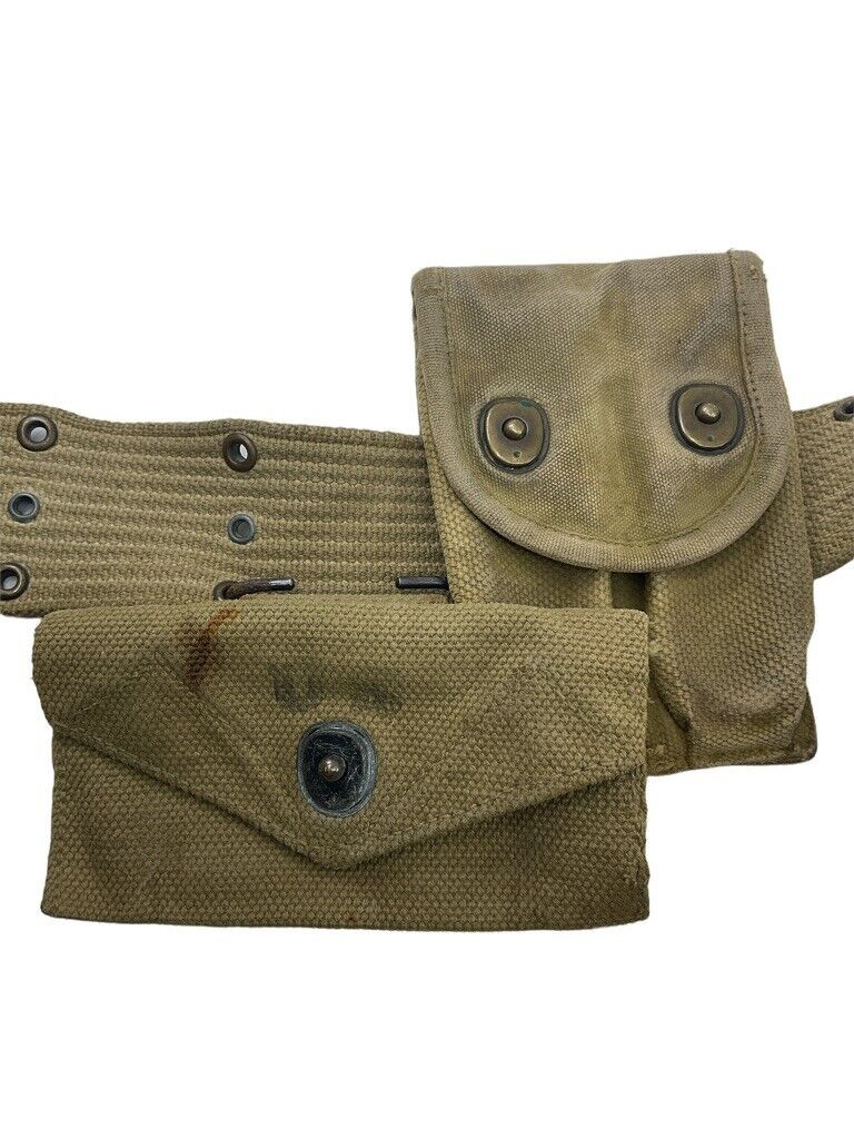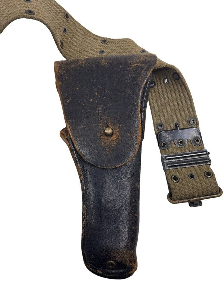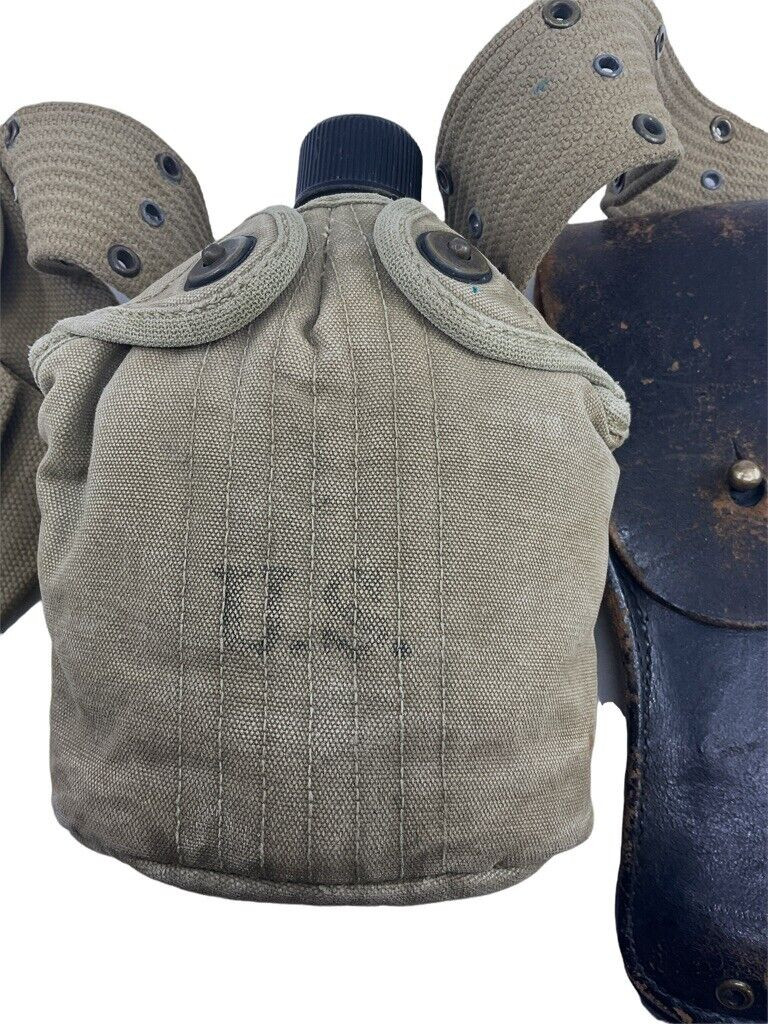 WW2 US Army Web Belt with Leather Boyt Holster Ammo Pouch Canteen Officers Set
