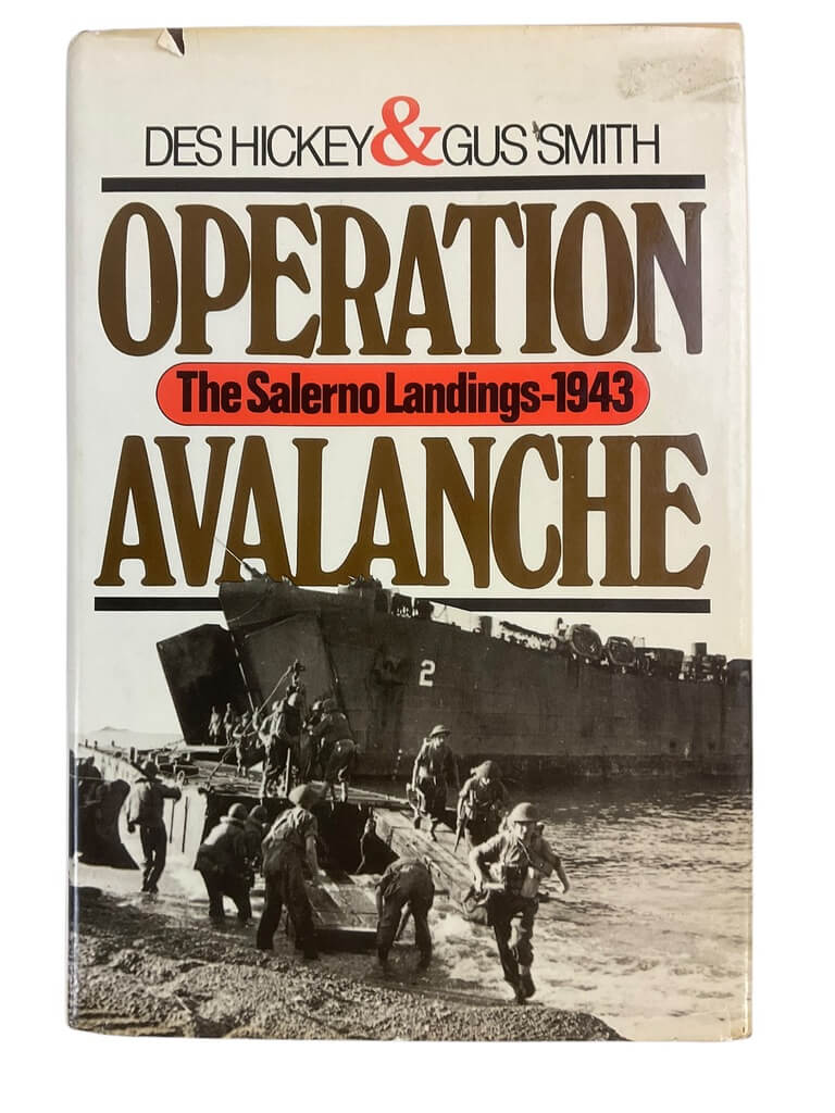 A hard cover used condition Operation Avalanche The Salerno Landings 1943 Reference Book with a total of 360 pages. Contains information and several photos and maps concerning the Allied landings at Salerno that almost led to disaster. This edition was published in 1984.