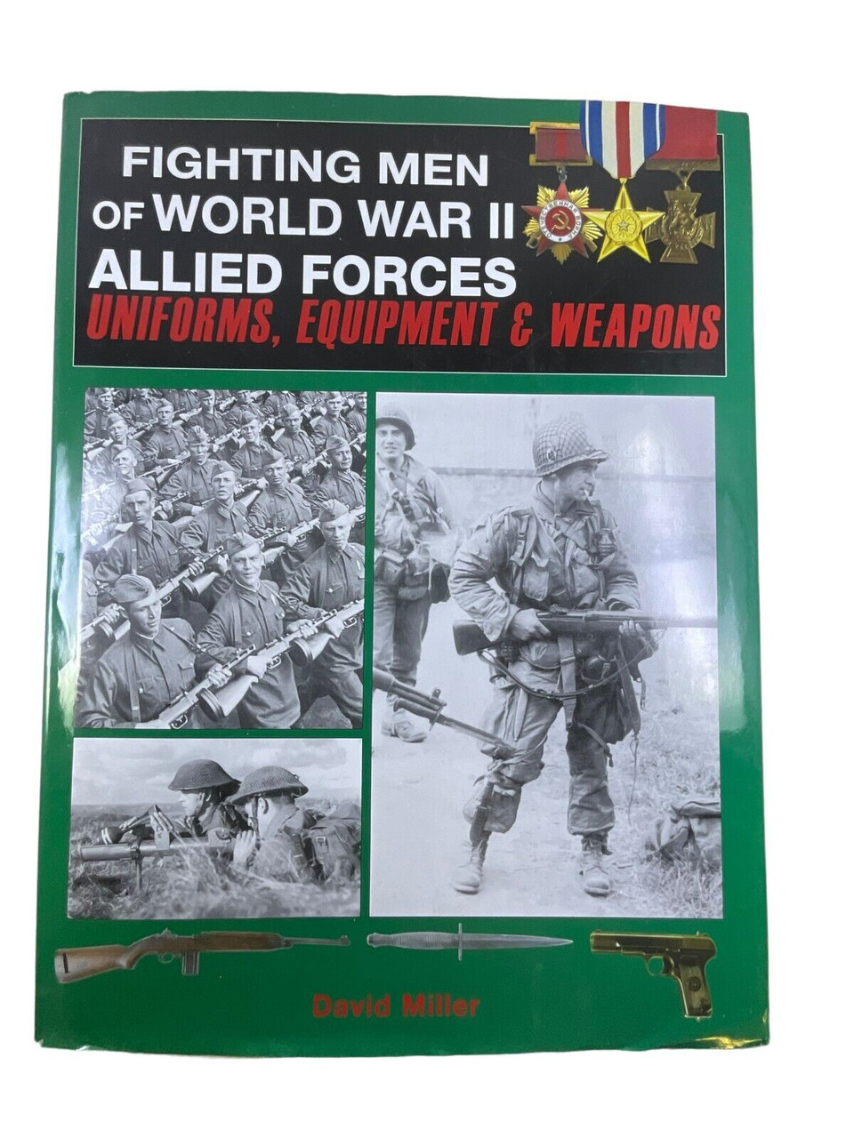 This is a used hardcover WW2 US British Fighting Men of World War 2 Uniforms Equipment and Weapons David Miller Reference Book.  Total of 384 pages with lots of pictures and information.