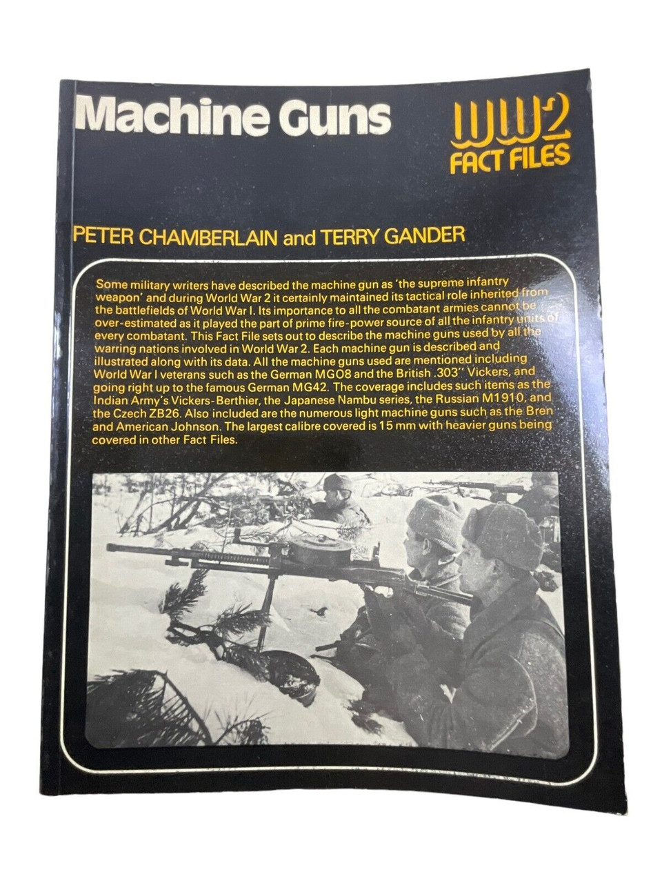 This is a used softcover WW2 US British German Machine Guns WW2 Fact Files Peter Chamberlain and Terry Gander Reference Book. Total of 64 pages with lots of pictures and information.