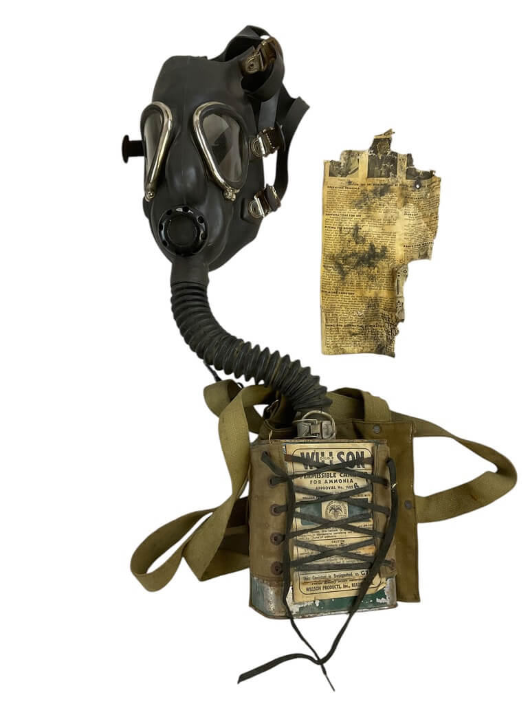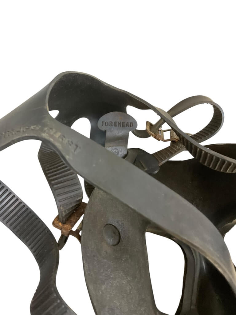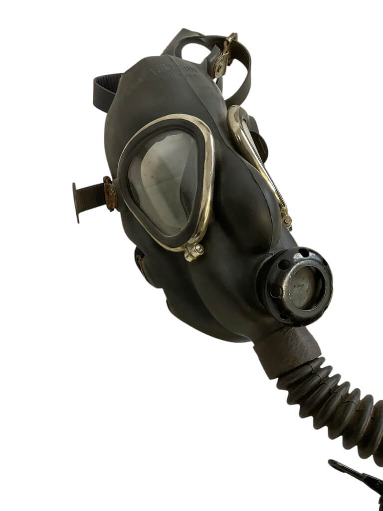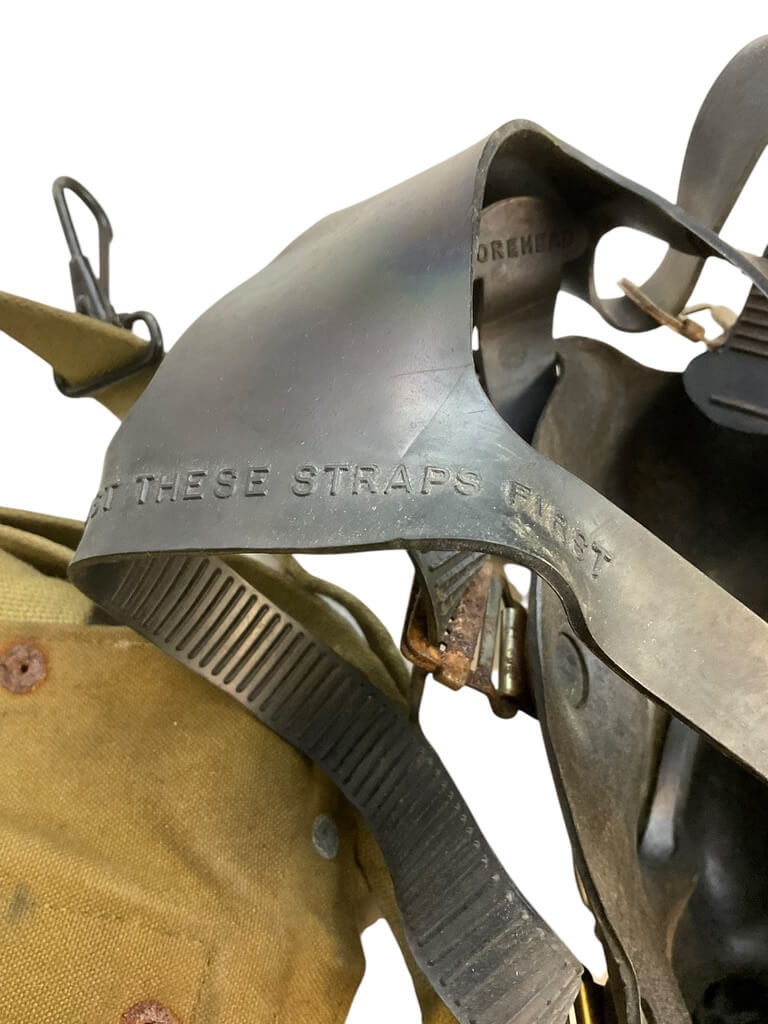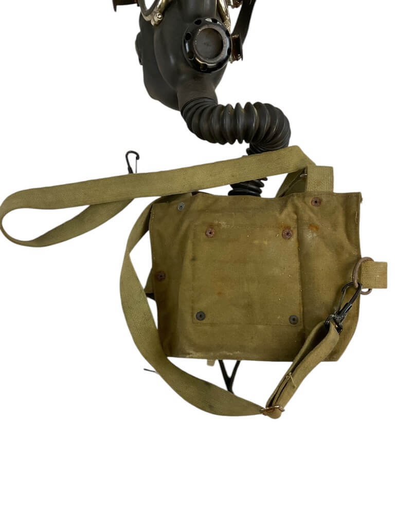 This item is an authentic WW2 US Civil Defense Gas Mask, a relic of the tumultuous times during the 1940s. This gas mask symbolizes the preparedness of American civilians, particularly during the threat of chemical warfare. Its components include a face mask, eye shields, and a filter canister for air purification. The mask is made of sturdy rubberized fabric, and the eye shields are made from a clear, durable plastic. The filter canister is typically made from metal. This particular model comes encased in a carrying case, made from a durable material, adding to its historical value. The case often displays signs of wear and tear, a testament to its age and use during one of the most significant periods in world history. This WW2 US Civil Defense Gas Mask in Case is a significant collectible for history enthusiasts and those fascinated by World War II artifacts. Please note the case is not original to the mask and the instructions are very fragile.