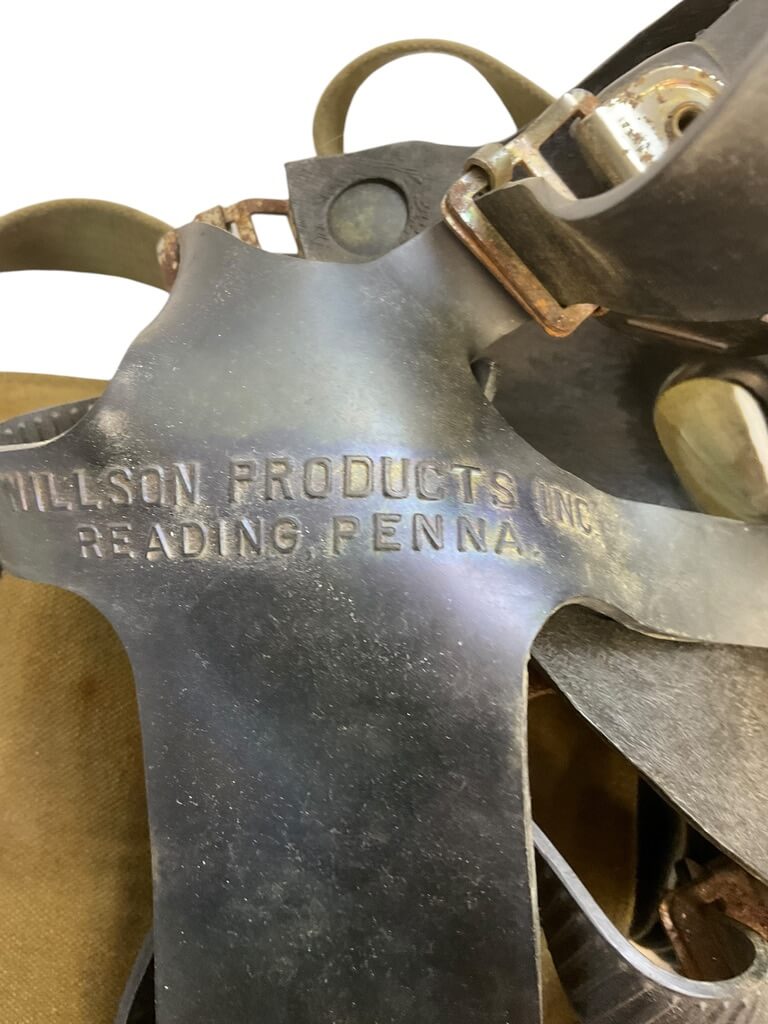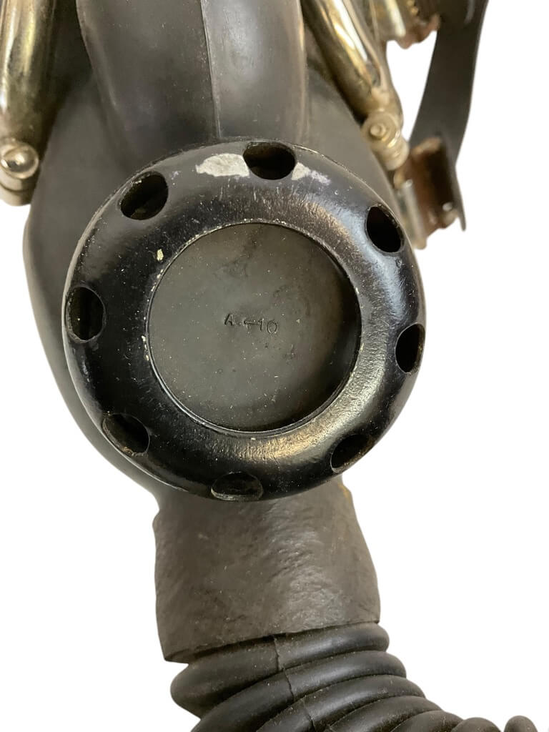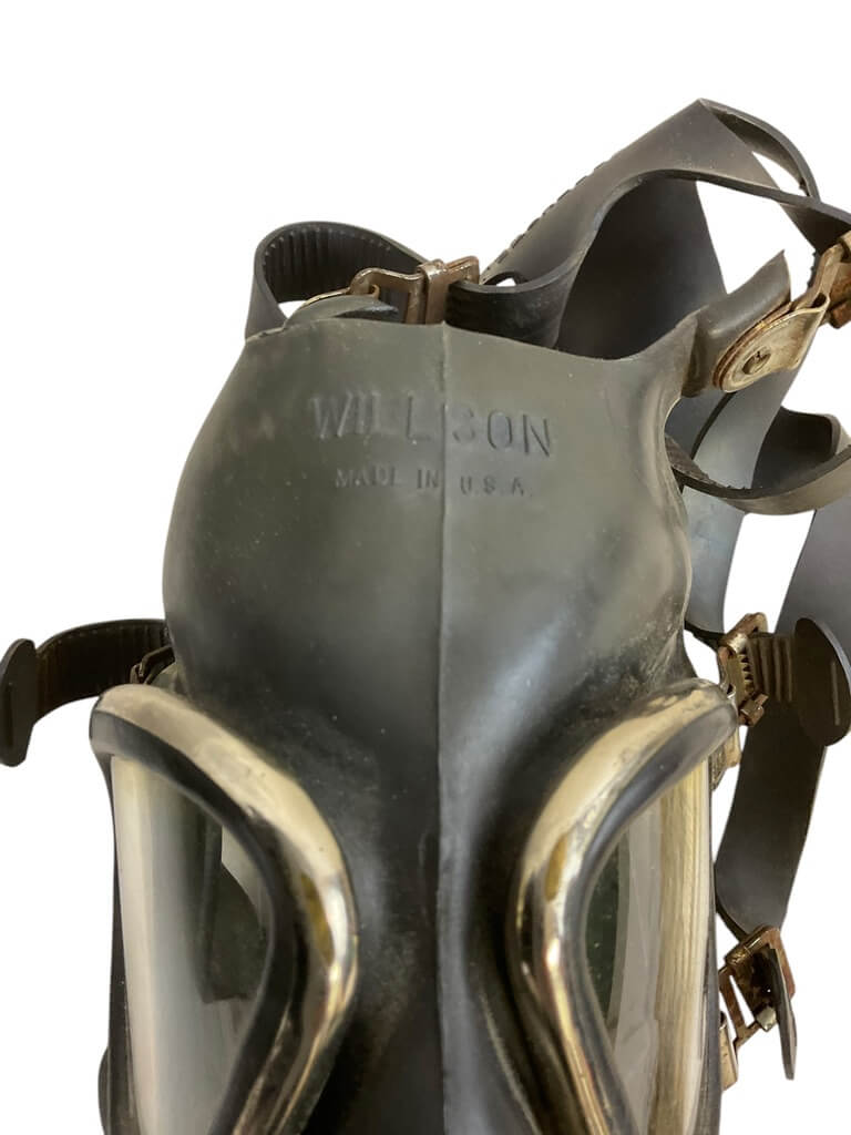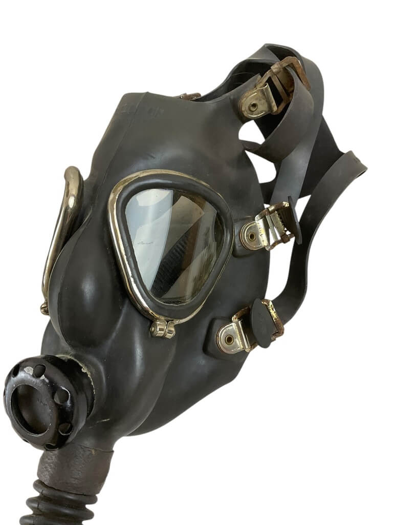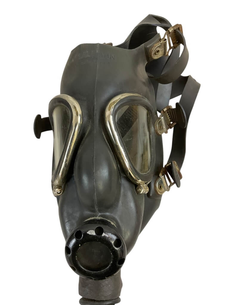 This item is an authentic WW2 US Civil Defense Gas Mask, a relic of the tumultuous times during the 1940s. This gas mask symbolizes the preparedness of American civilians, particularly during the threat of chemical warfare. Its components include a face mask, eye shields, and a filter canister for air purification. The mask is made of sturdy rubberized fabric, and the eye shields are made from a clear, durable plastic. The filter canister is typically made from metal. This particular model comes encased in a carrying case, made from a durable material, adding to its historical value. The case often displays signs of wear and tear, a testament to its age and use during one of the most significant periods in world history. This WW2 US Civil Defense Gas Mask in Case is a significant collectible for history enthusiasts and those fascinated by World War II artifacts. Please note the case is not original to the mask and the instructions are very fragile.