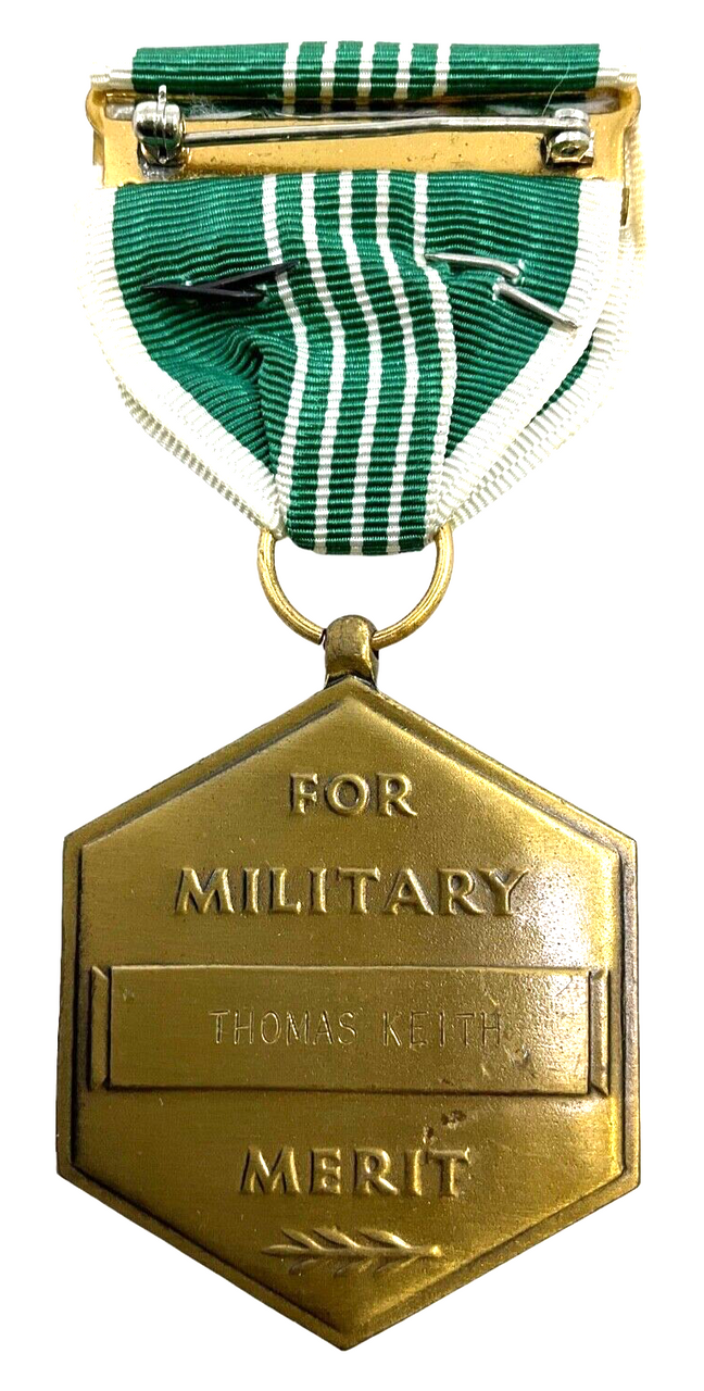 WW2 US For Military Merit Medal & Ribbon With V & Leaf Named Thomas Keith